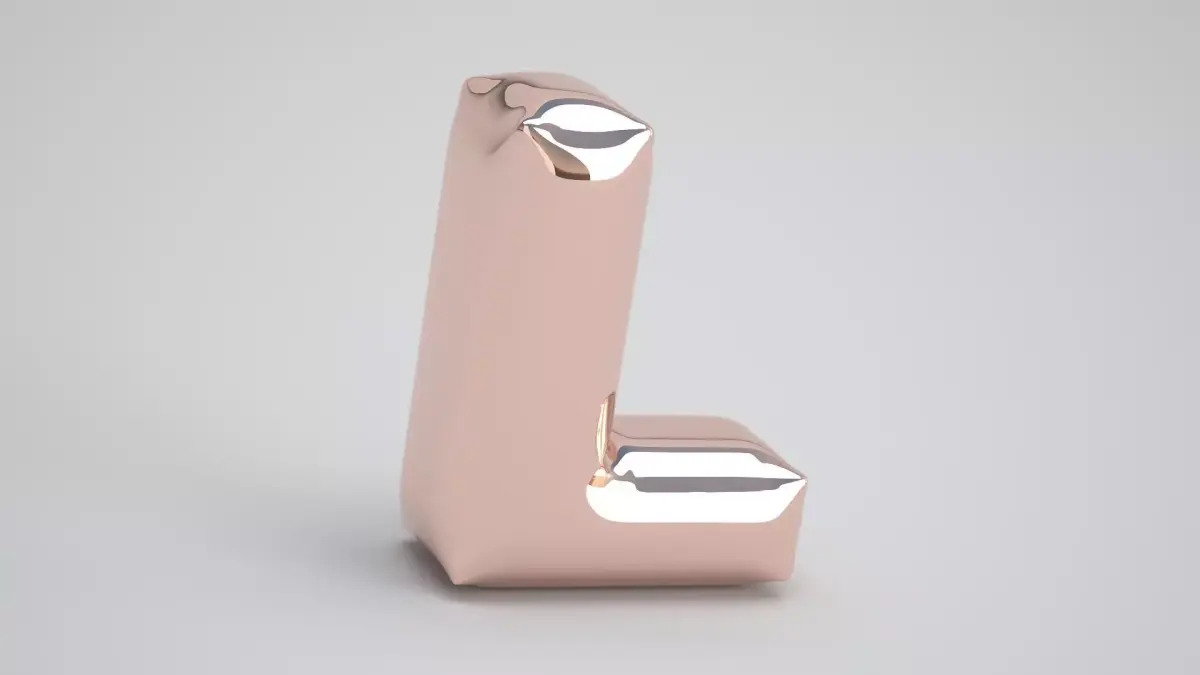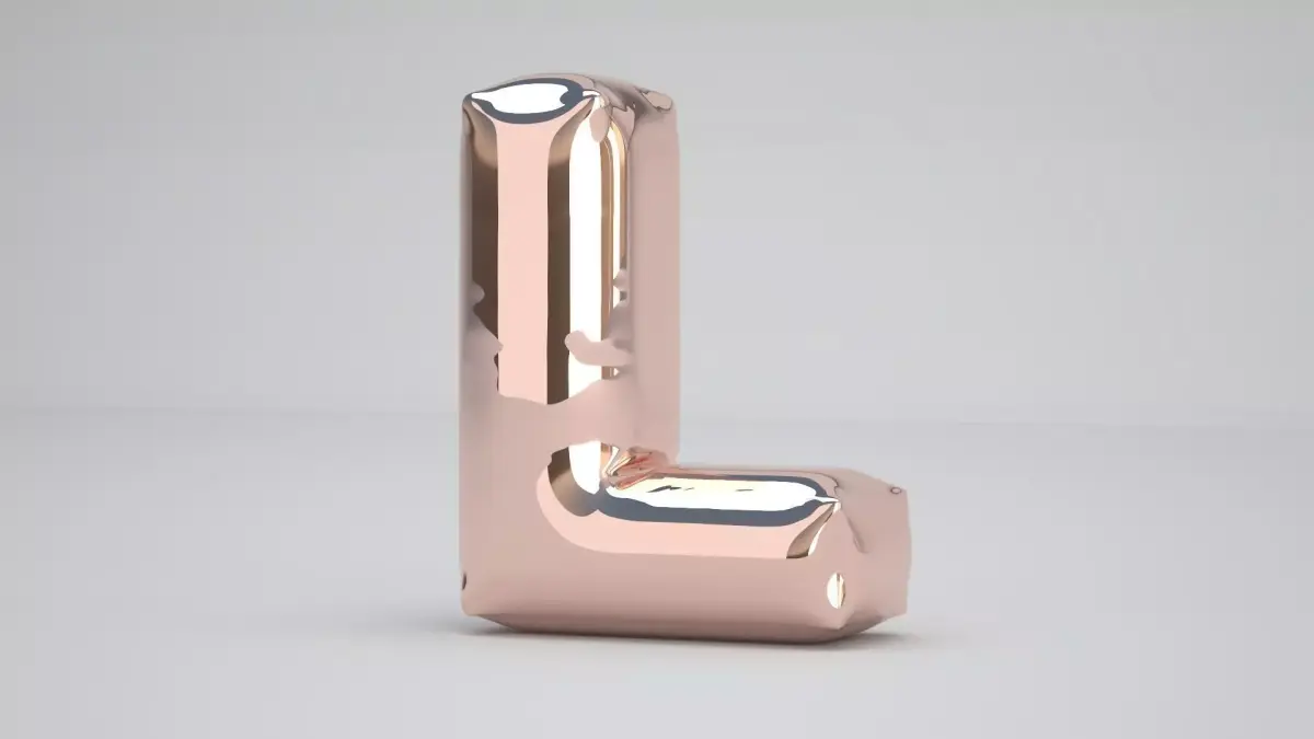 Realistic 3D Model OF Balloon L Alphabet Copper