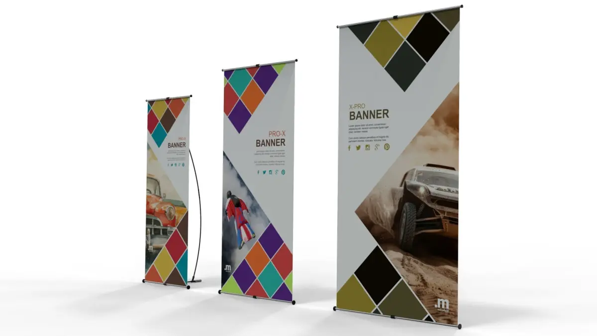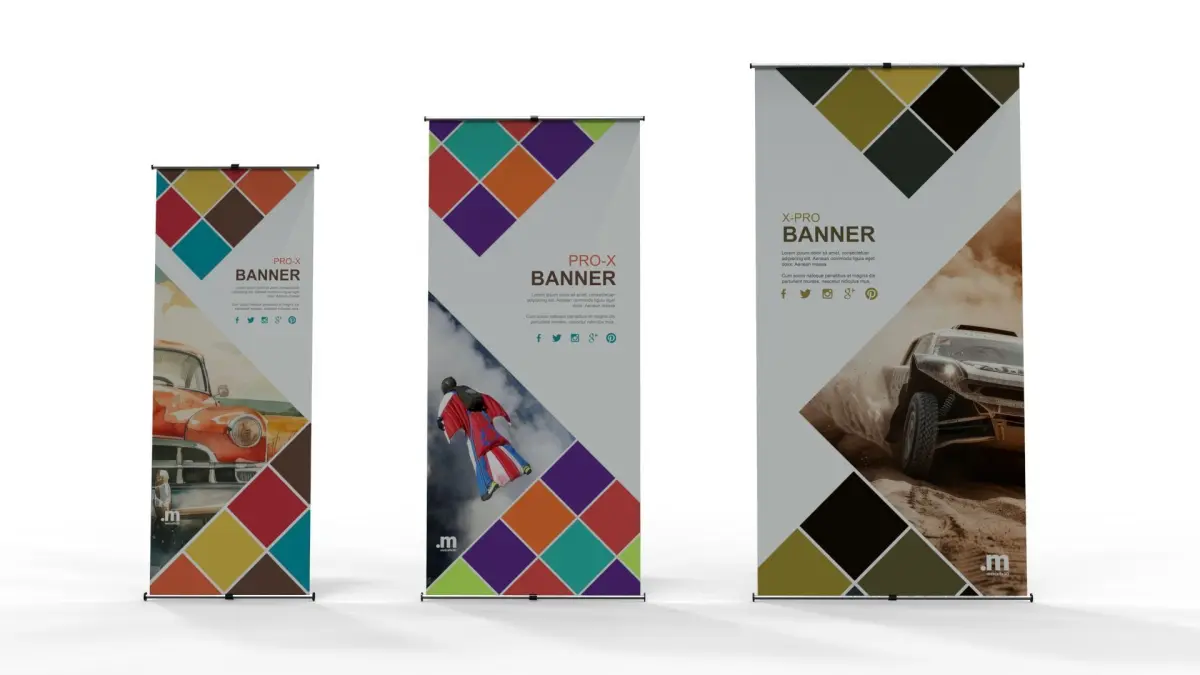 This 3D model represents a realistic set of L-Banner Display Stands in three standard sizes: 60x160 cm, 80x180 cm, and 100x200 cm. Designed for indoor use in retail, exhibitions, trade shows, clinics, commercial stores, and promotional activations, this set is ideal for showcasing branding or advertising graphics in a clean, professional format.