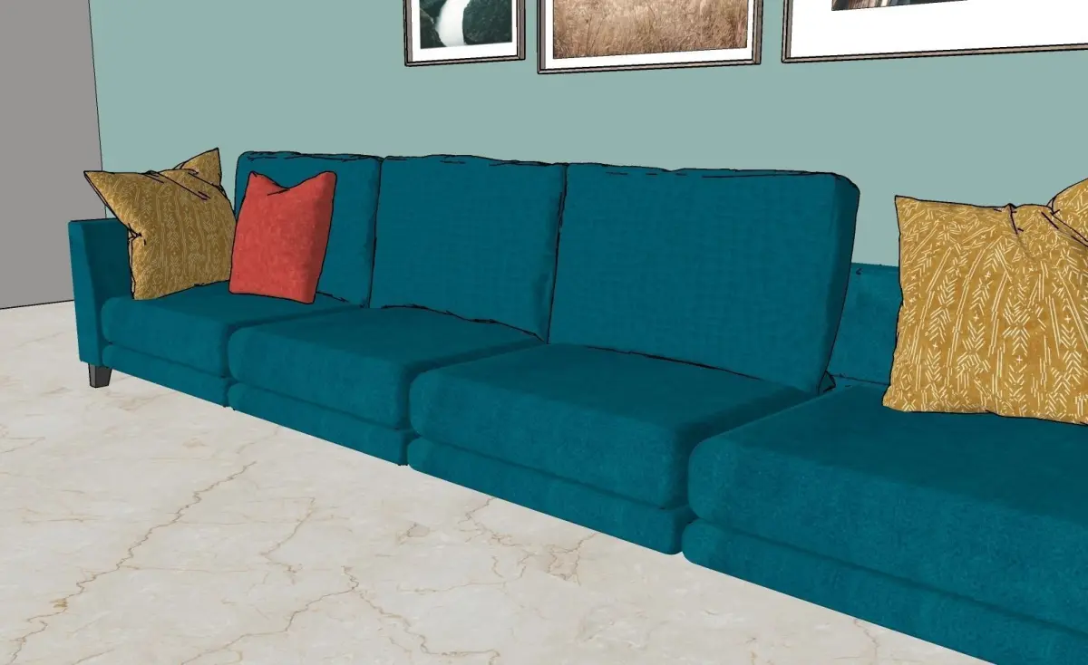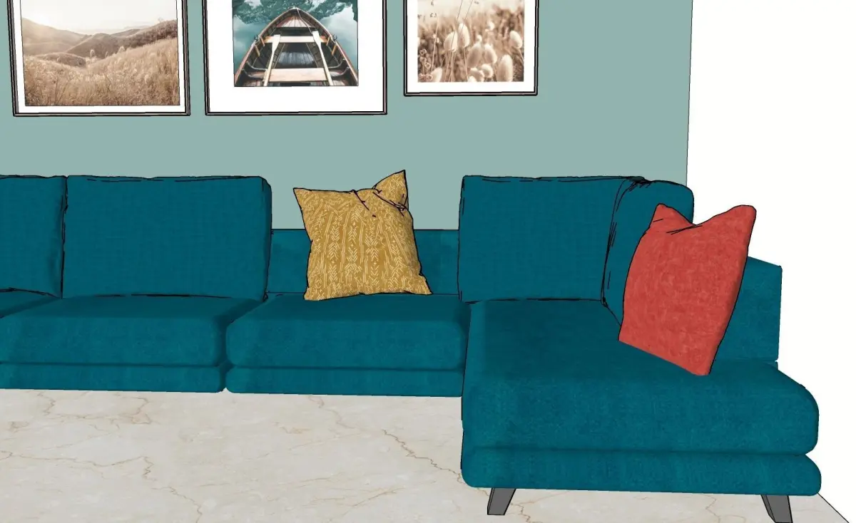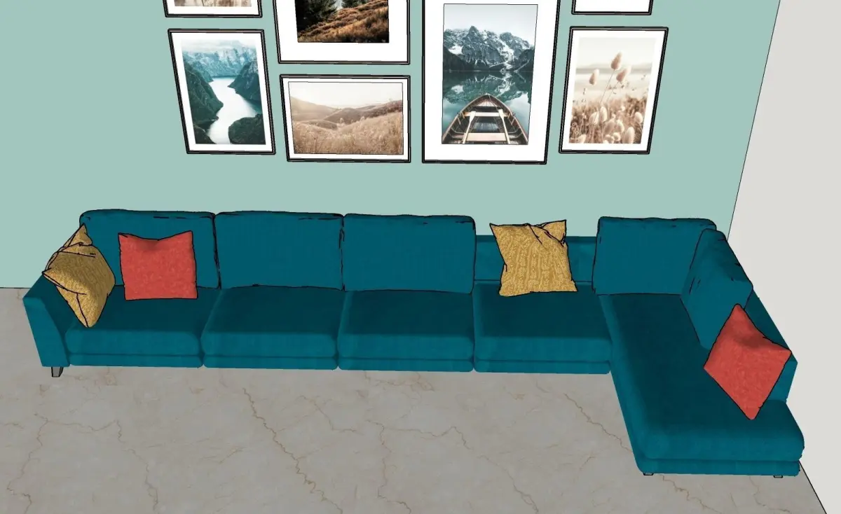 Modern age sofa in L shape, 6 seaters with colour pop materials makes it reach and modern at the same time. New design sofa.