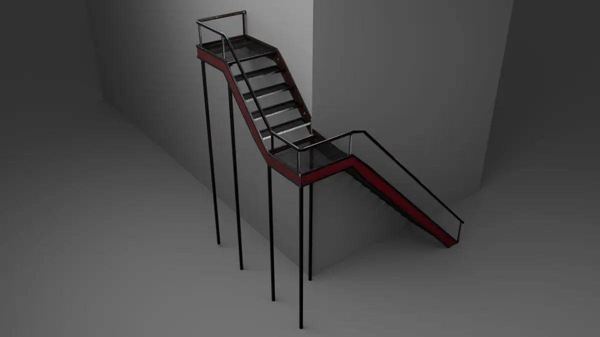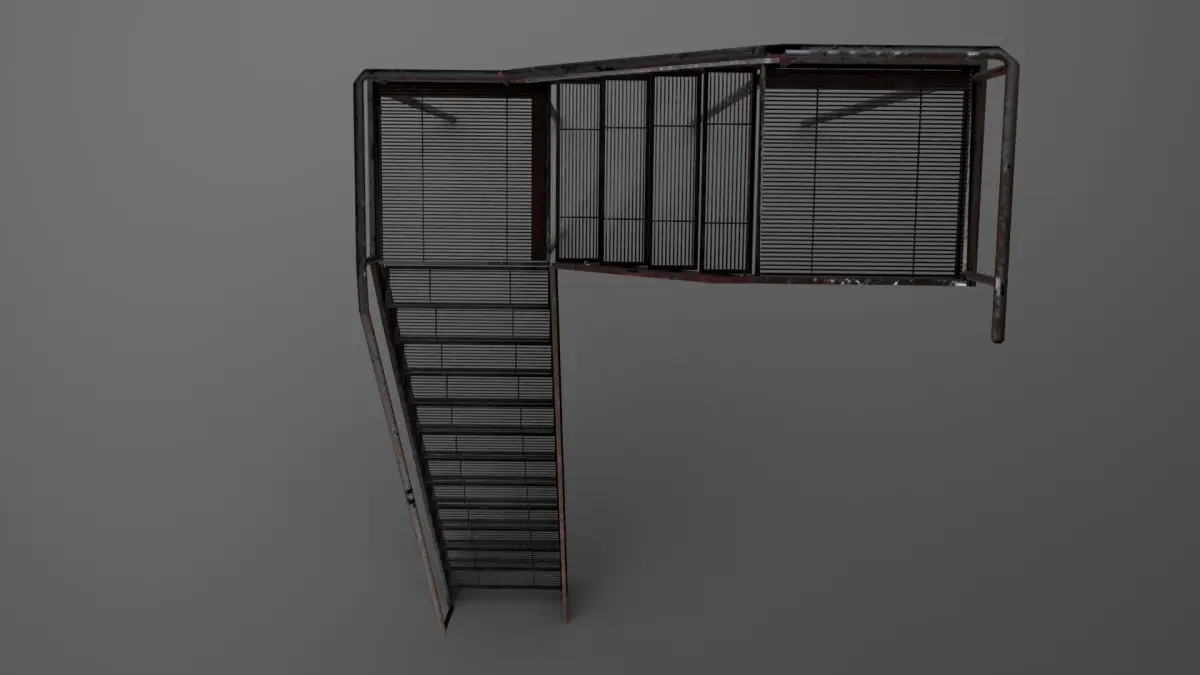 out of sacle 3D model of steet stairs rusted-Scene includes uv maps and materials ready for instant rendering