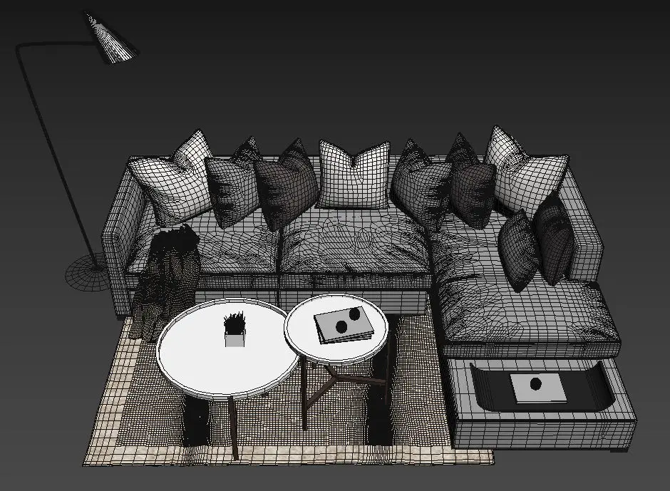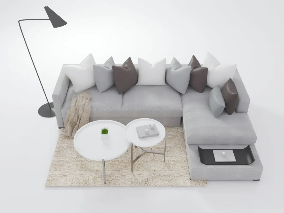 Need a living room set to complete the look? Get this grey L-shaped sofa, with a cool coffee table set and floor lamp .