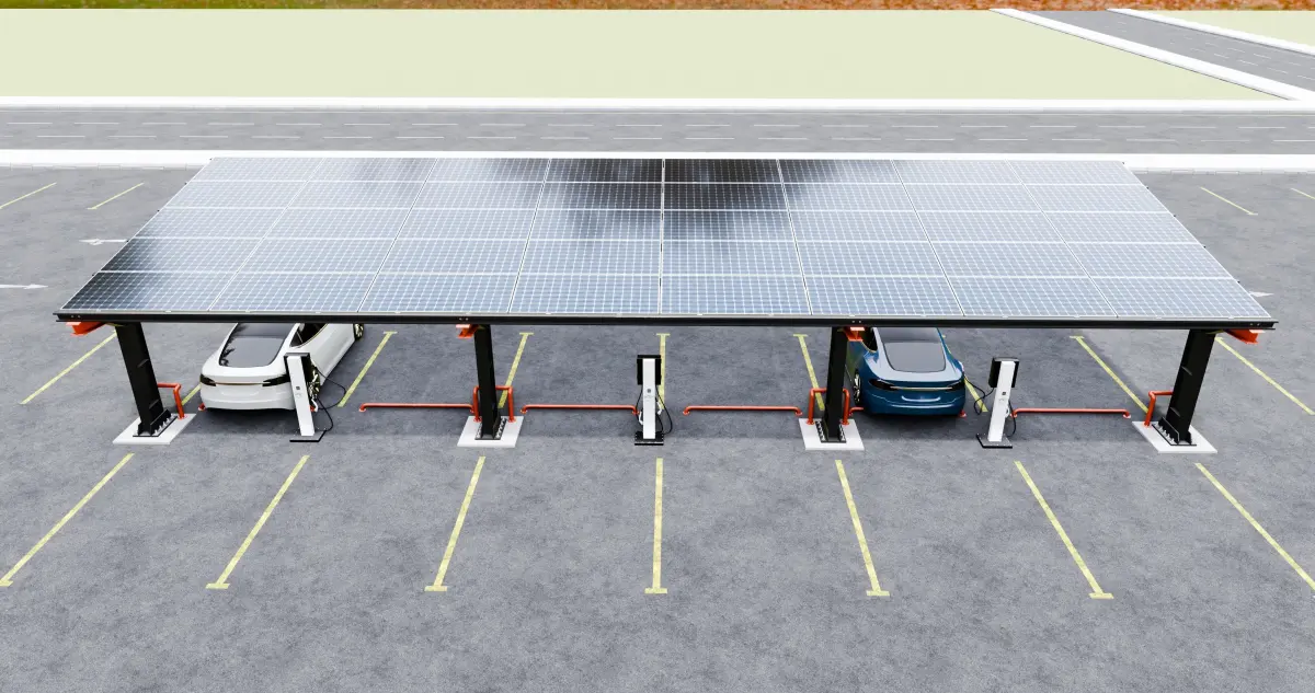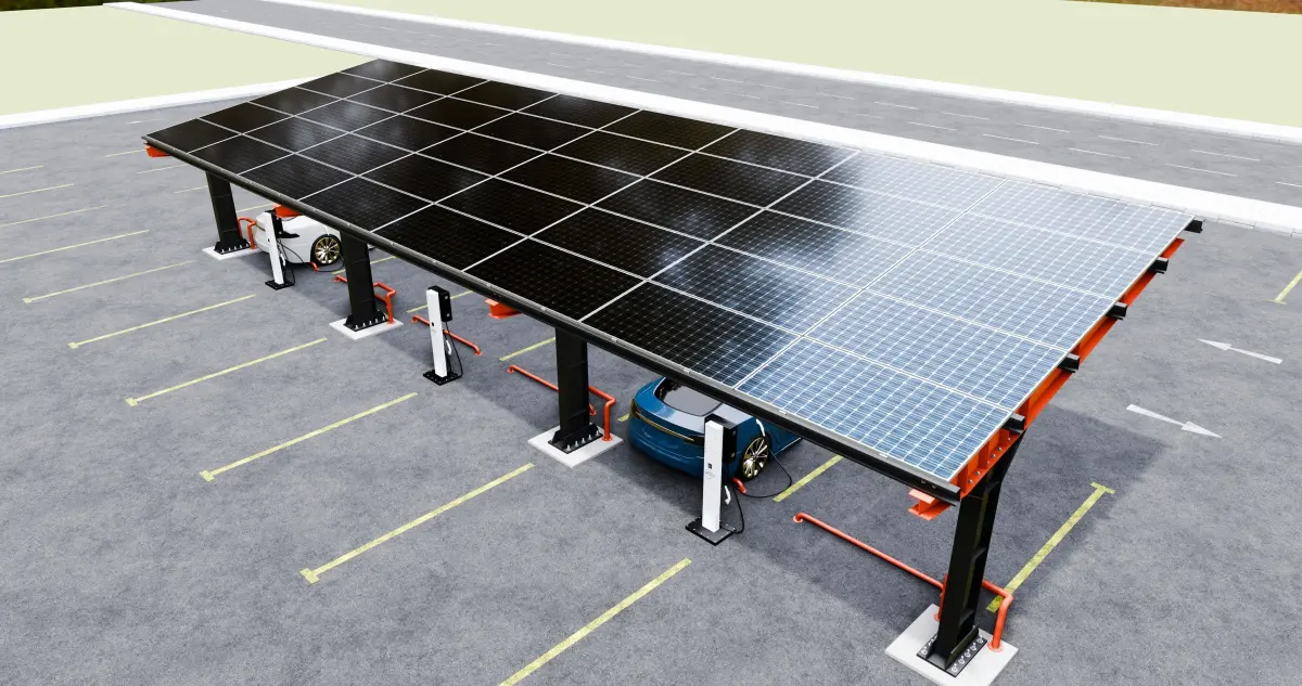 Solar Carport is prepared with 2 different color options. Hot dip galvanized model was created separately. Black and orange color models were created separately.