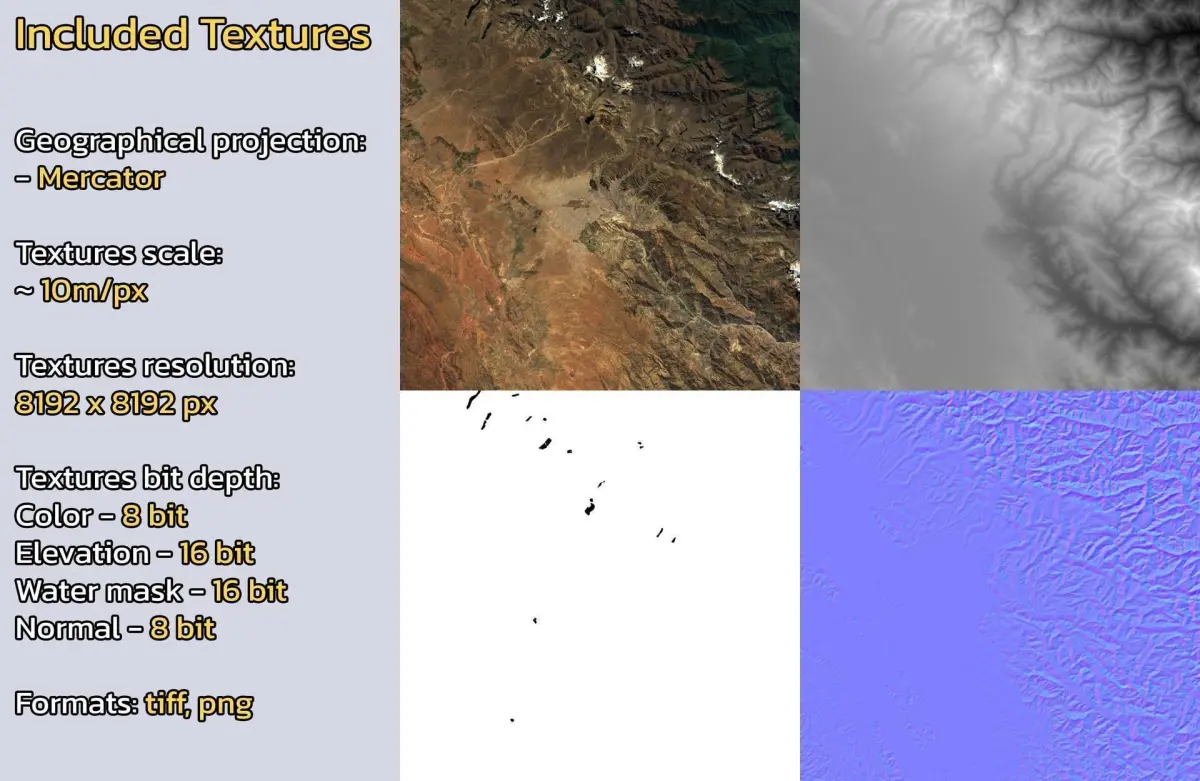 Warning: minor clouds/artifacts may be present on the diffuse color satellite texture due to the nature of the dataset. Check product images.