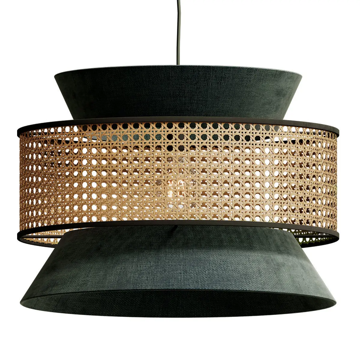 The Dolkie suspension lampshade by La redoute Interiors. Surrounded by a ring made of rattan cane, it displays a very trendy vintage style. French made.
