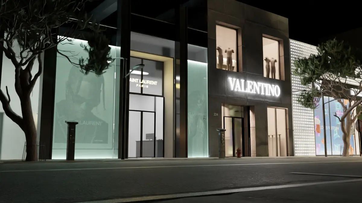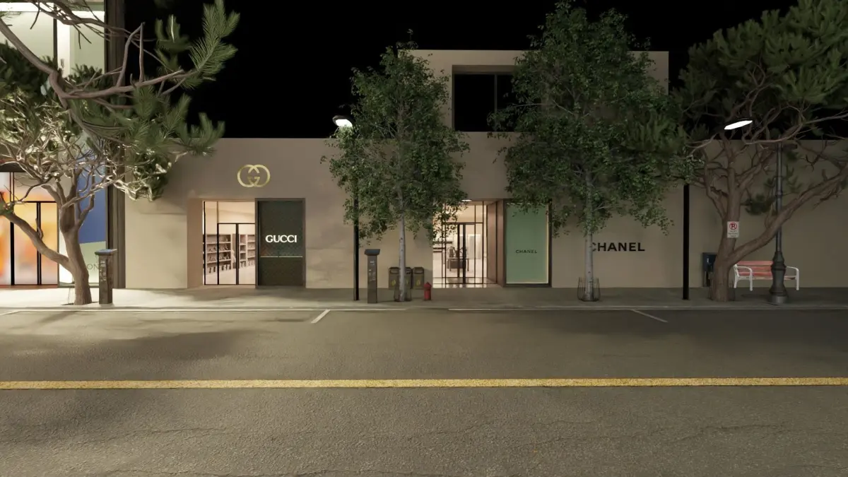 3D model of rodeo drive with 5 different luxury stores