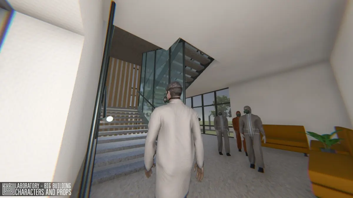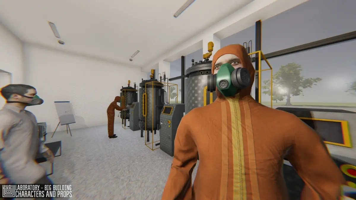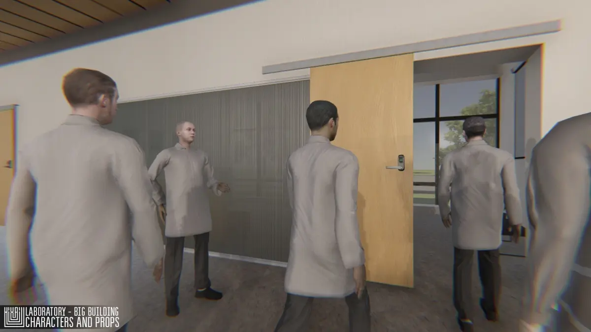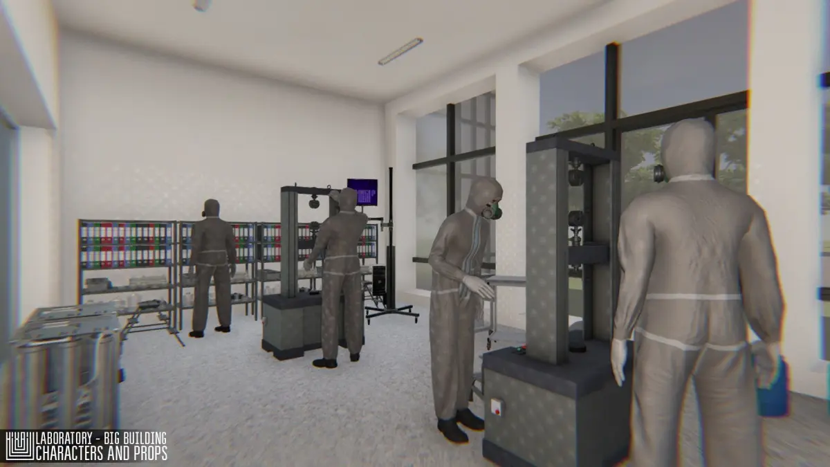 Mixaill studio presents you a big project - Laboratory - big building, characters and props. This is a three-storey modular building with an adjacent territory, modular window, modular door, elevator. All room with all the necessary equipment, furniture, as well as with characters (Character setup to work with Mecanim, no animations included in this pack).All doors you canopen. This pack you can optimize and use to create games, simulators and for VR projects.