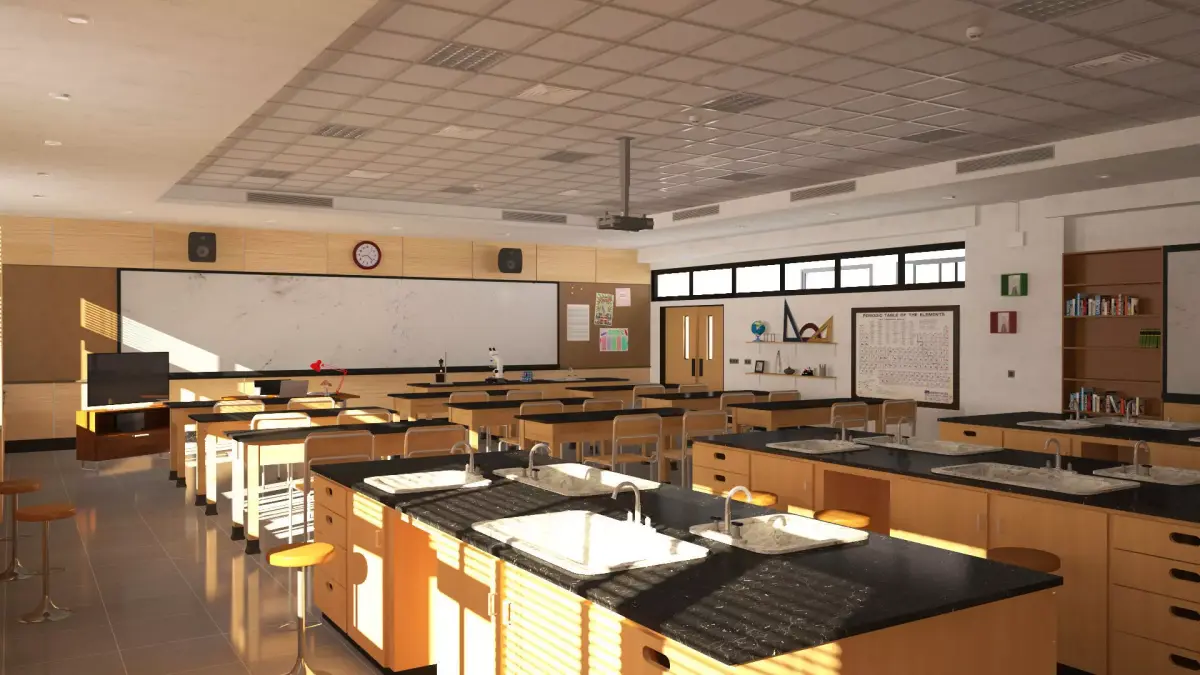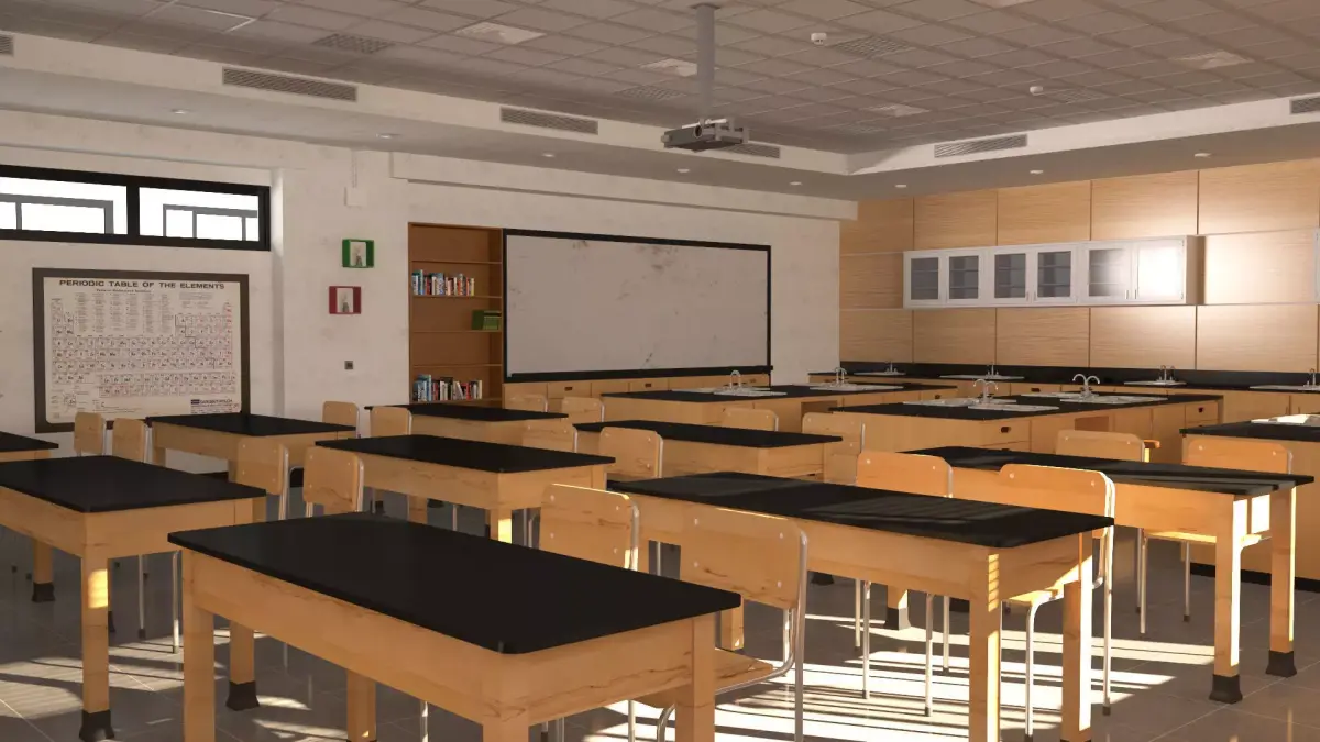 Detailed 3D Interior Scene of a Laboratory Classroom