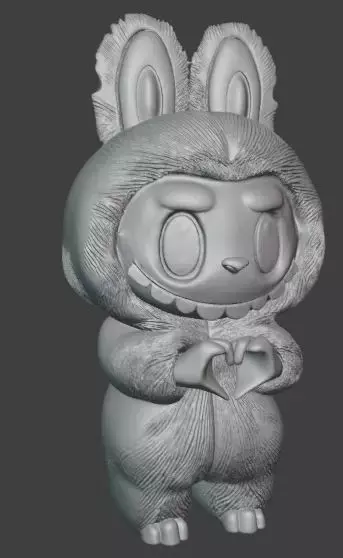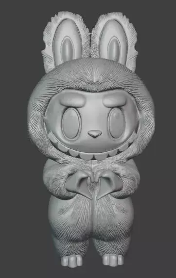 Adorable Labubu-style chibi monster bunny 3D model featuring a fluffy costume, big expressive eyes, and a playful heart hand pose. Perfect as a collectible figurine, resin print, or gift for fans of cute characters and fanart toys. The heart-shaped hands make this model extra special for decoration, gifting, or painting.
