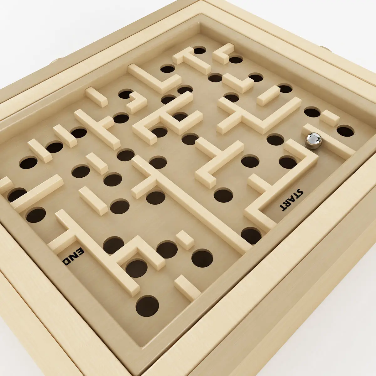 High poly 3d model of a Labyrinth Game. Comes complete with high resolution wood diffuse and bump maps.