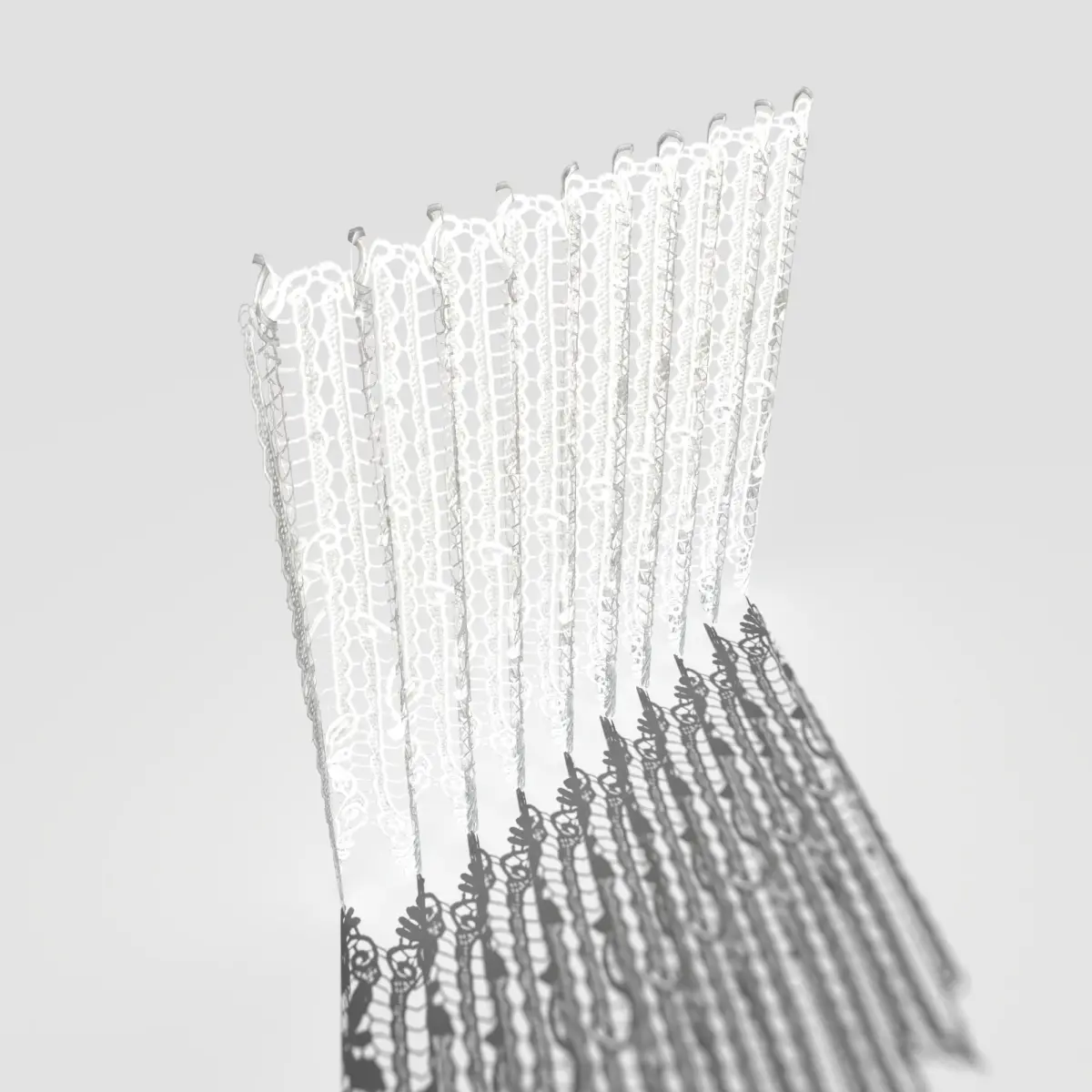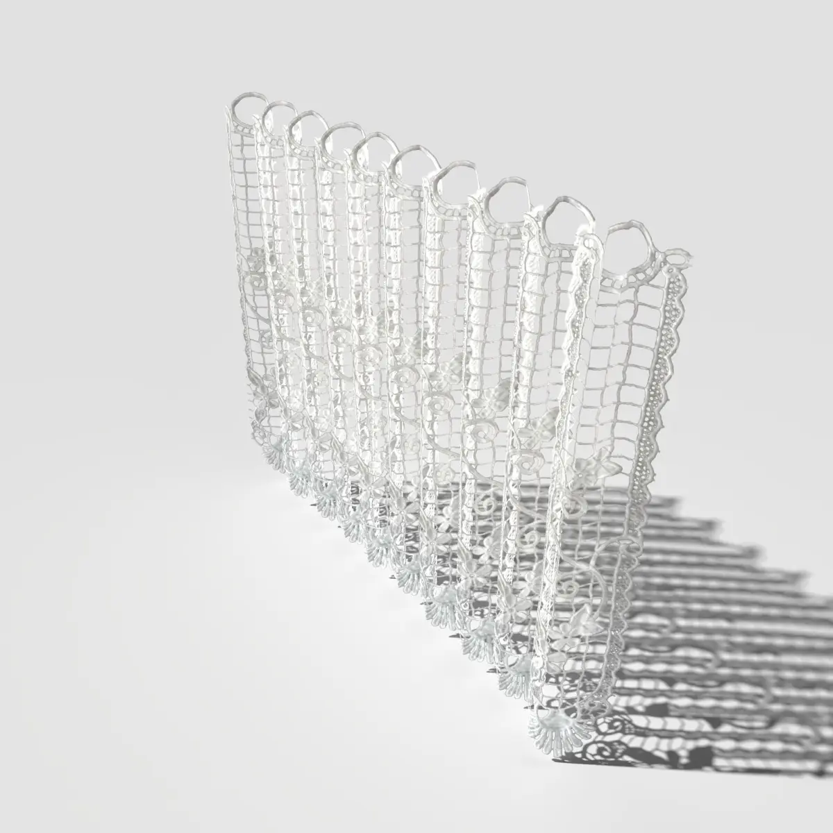 This is PBR Lace Curtain Short. The file includes a model in real world scale (60cm x 5cm x 51cm). It comes in following formats:
