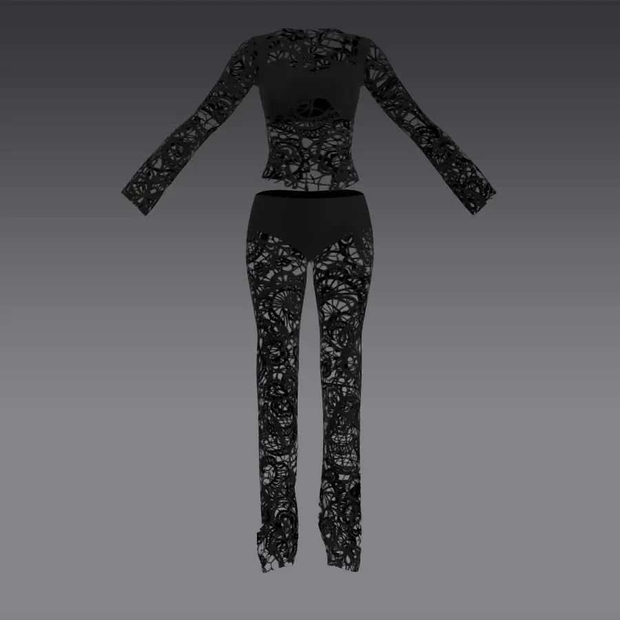 LACE FABRIC BLACK BLOUSE ANDPANT TWO PIECES 3D model