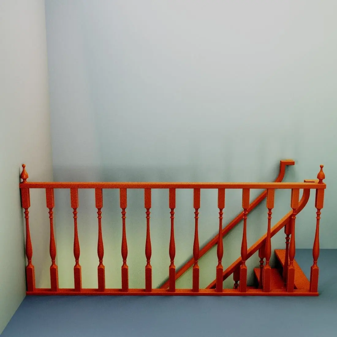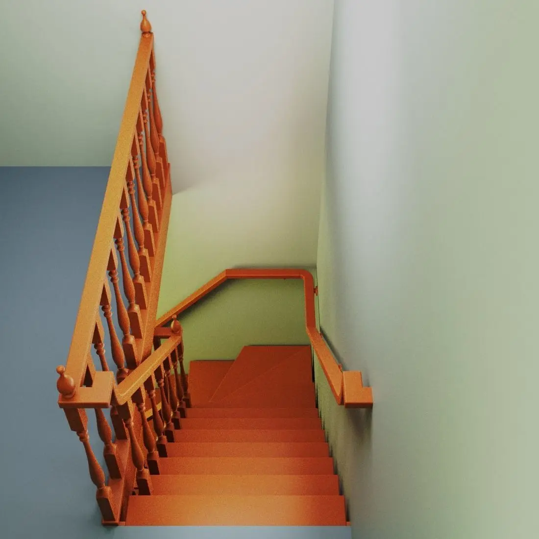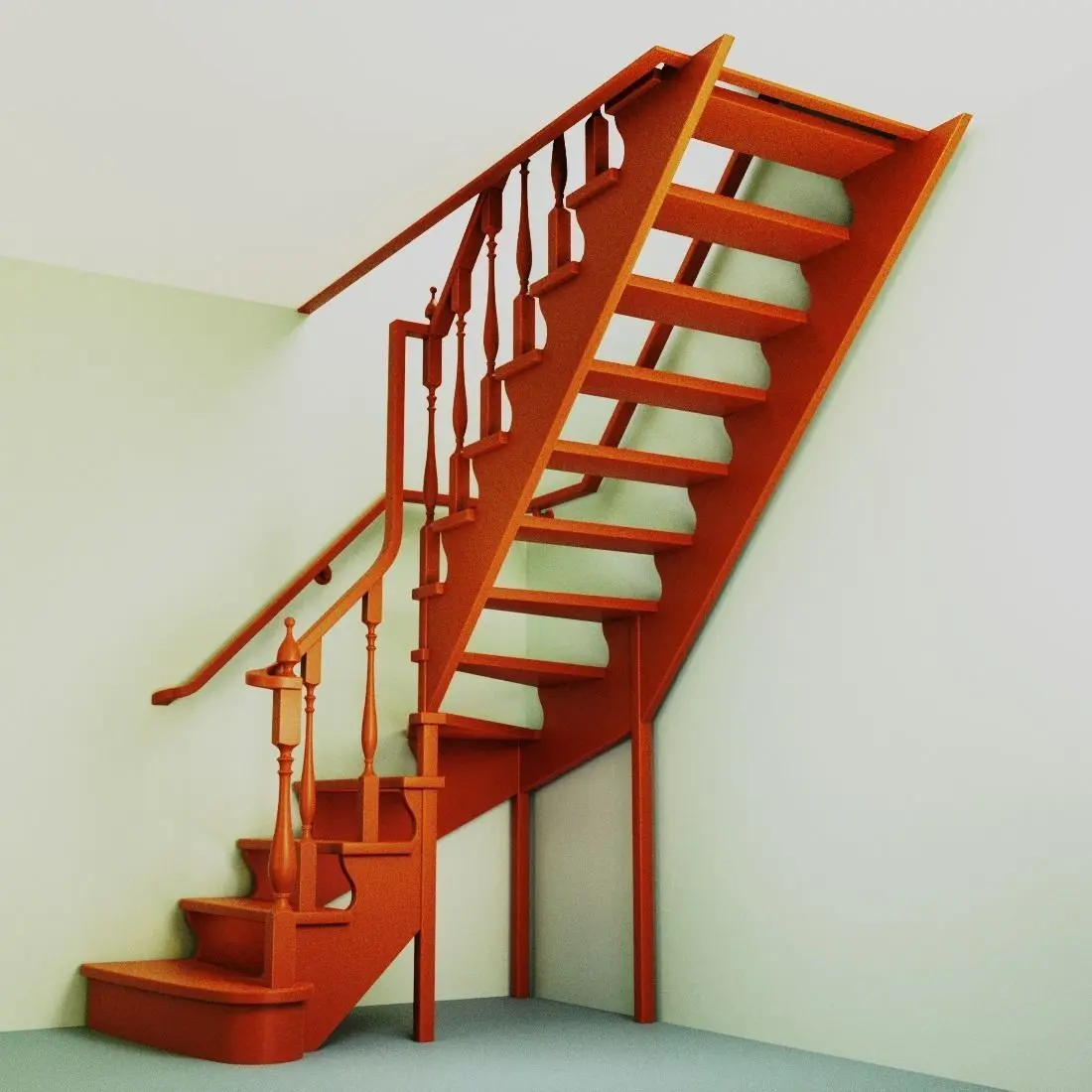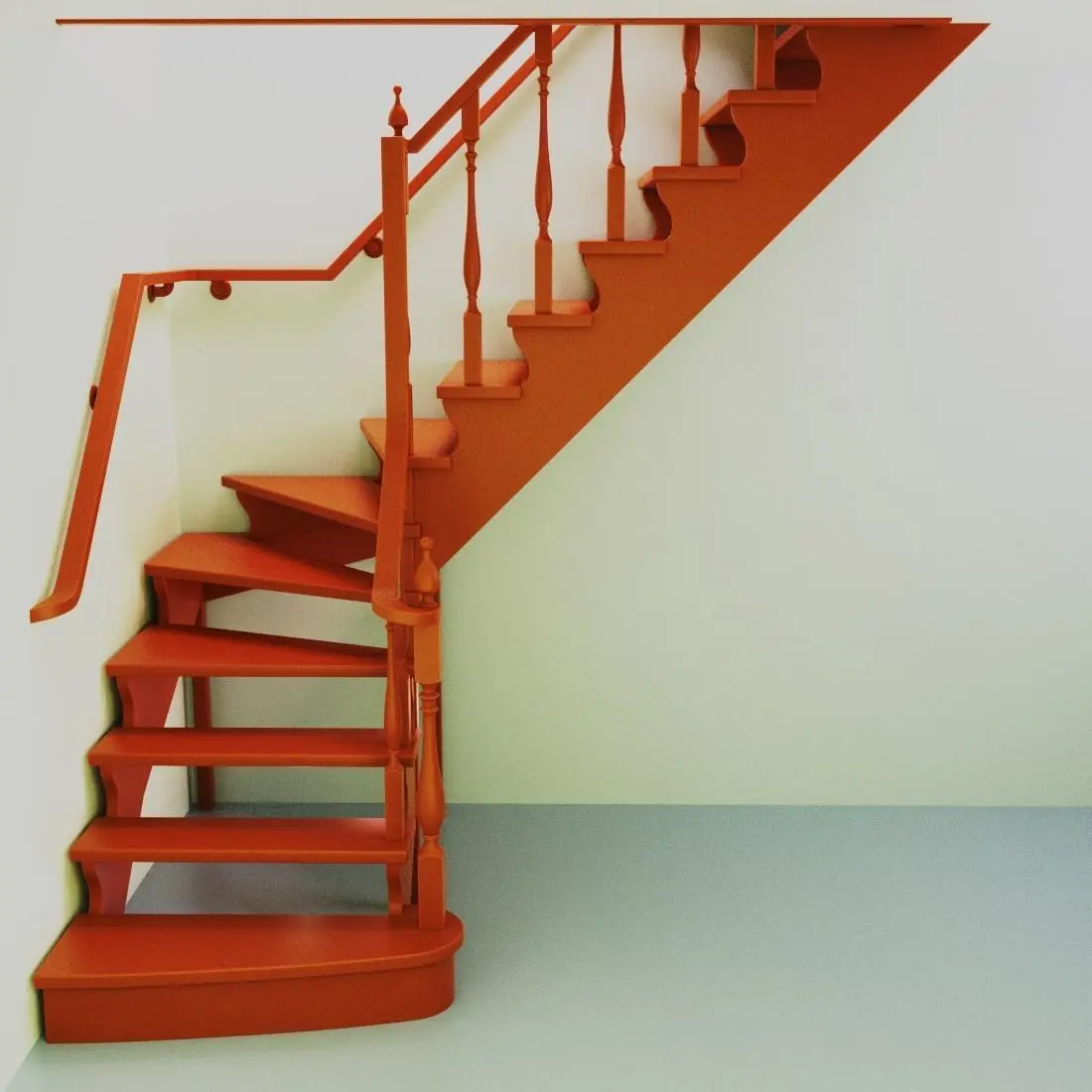 Wooden classic staircase with decorative elements.Compact size, lightweight transparent design.The steps do not touch the walls. Details are varnished, no textures. The height of the 2nd tier is 3080 mm.The size of the opening in the ceiling is 2550*1100 mm.The staircase can decorate the interior of a small house or apartment.The model is made in blender 3.2.2, available in blend, dae, obj, x3d, stl, abc, glb, usdc, fbx formats.