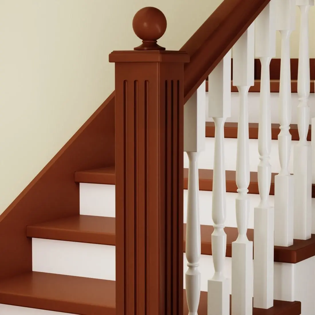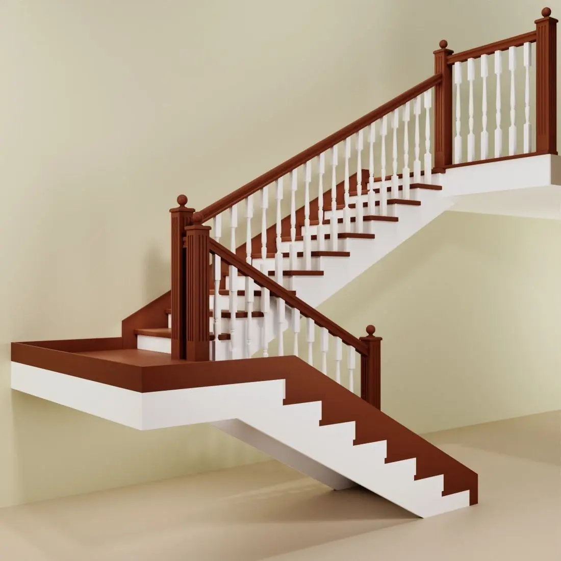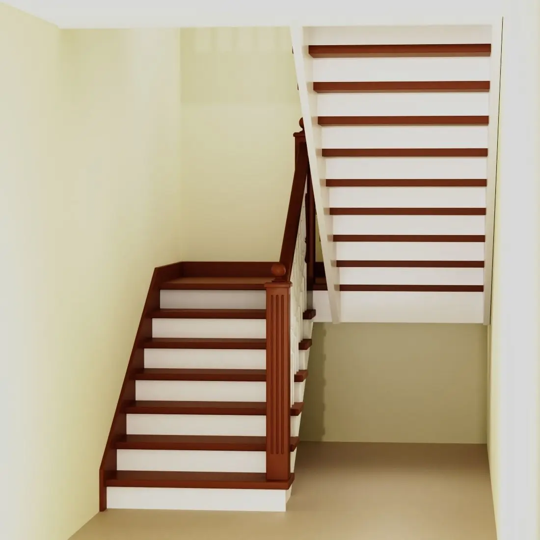 Stairs wooden classical with turned rail-posts.A staircase on stringers, with massive steps and decorated pillars.In places where the steps come into contact with the walls, there is a bumper board.Rise to the 2nd floor 2720 mm, step 160 * 290 mm.Suitable for creating a project of a private house and any other purposes.The work is done in blender 3.2.2. Available in blend, dae, obj, x3d, stl, abc, glb, usdc, fbx formats.