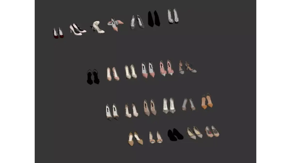 This showcases a diverse range of women's high-heeled shoe display scenes, resembling a virtual shoe design library or private collection display:Overall layout:All shoes are neatly arranged in four rows, paired and placed on a light gray background, visually clean and orderly for easy comparison and selection.Shoe style:Covering a variety of designs from classic to fashionable:Classic styles: pointed slim heels, light soled shoes, mainly in beige, nude, and black colors, are timeless basic styles.Design: Shoes with decorations such as rhinestones, bows, metal buckles, and printed materials such as snake and zebra patterns, as well as contrasting color splicing design, full of personality.Sandal styles: single strap sandals, T-shaped strap sandals, suitable for spring and summer seasons, combining elegance and comfort.Color and Material:The colors range from gentle shades such as nude, beige, and light pink, to steady tones such as black, deep purple, and navy blue, and then to metallic luster such as gold and silver, with rich layers. The materials include leather, satin, snake patterned leather, etc., and each pair exhibits a unique texture.Visual experience:The entire scene conveys a refined and diverse fashion attitude through orderly arrangement and diverse design, showcasing both the elegant charm of high heels and the infinite possibilities of personal style.
