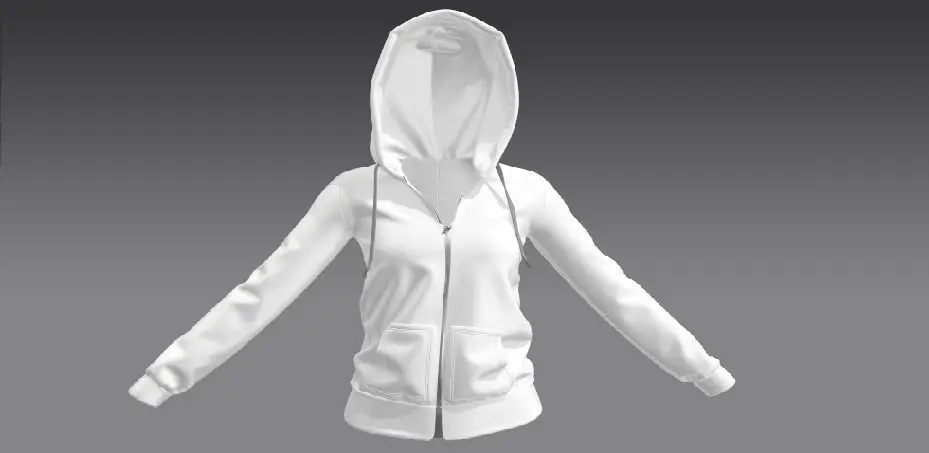 Ladies Hoodie created in Marvelous Designer. Modeled in A- Pose, both Hood ON and Hood OFF.