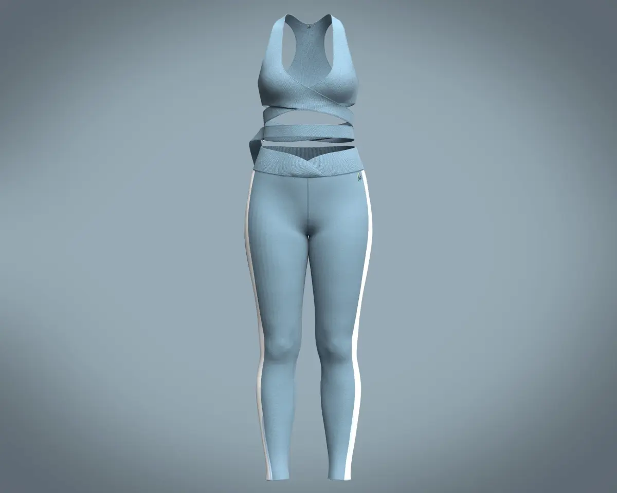 Ladies Ribbed gym Bralette with leggings made in CLO3D/Marvelous Designer.