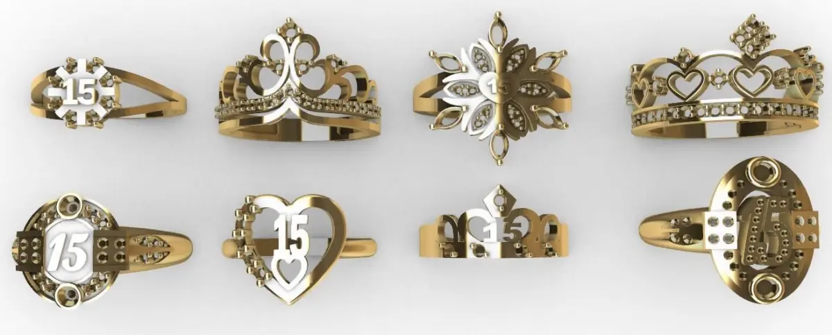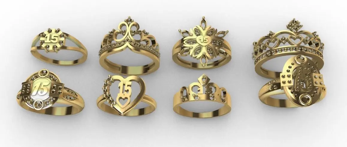 Lady Crown ring collection 8 units anillos de 15 coronas 3D print model