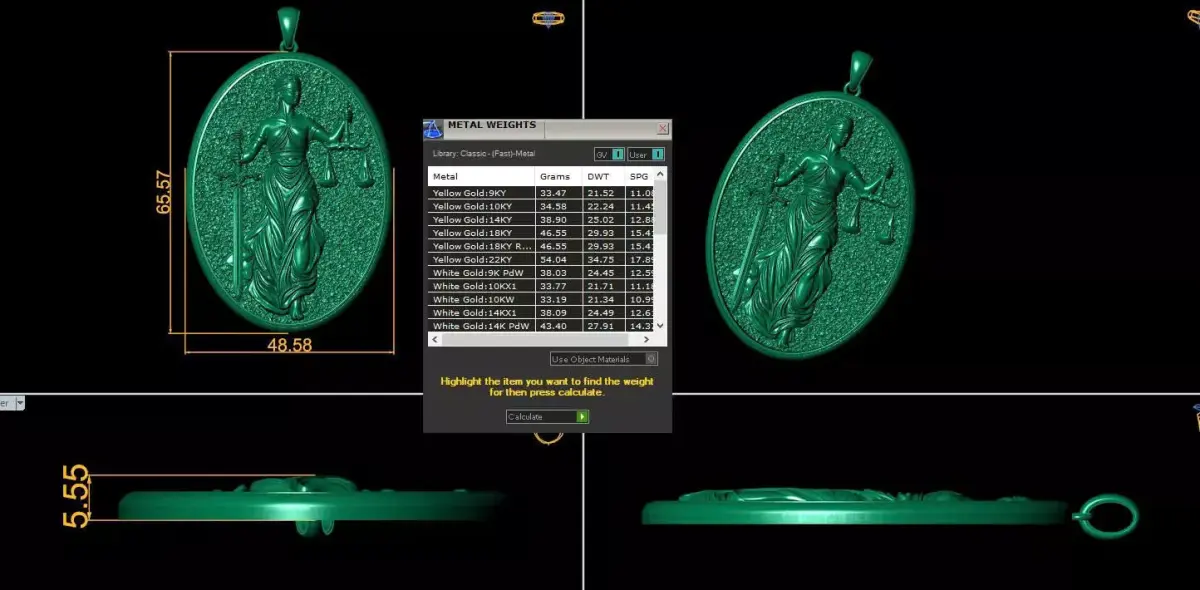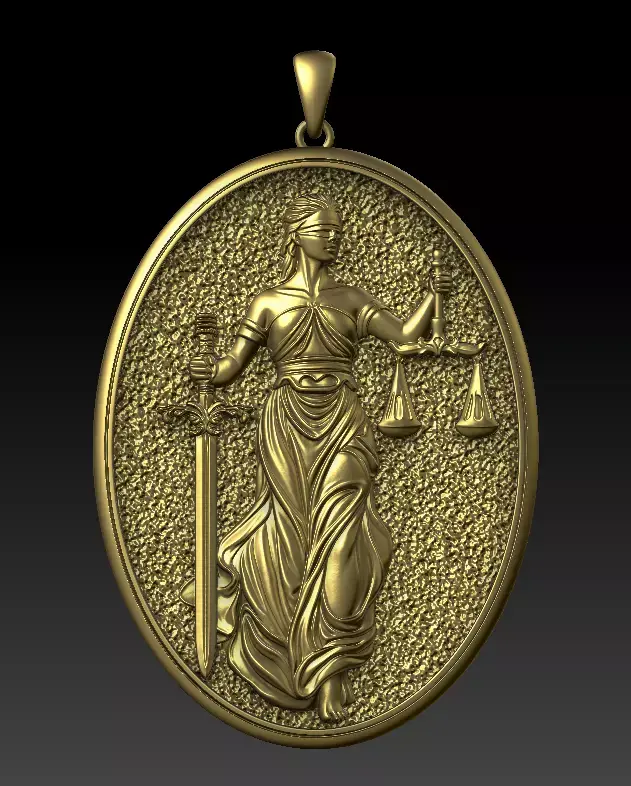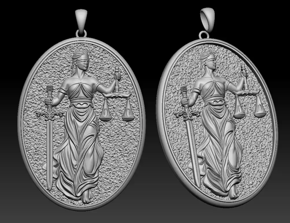 • High-relief Lady Justice sculpture with classical proportions• Oval medallion format with balanced composition• Deep, crisp relief suitable for polishing and stone-free finishing• Solid construction for luxury pendant production• No undercuts in critical areas – CNC & casting optimized• Perfect for symbolic, legal, religious, or statement jewelry lines