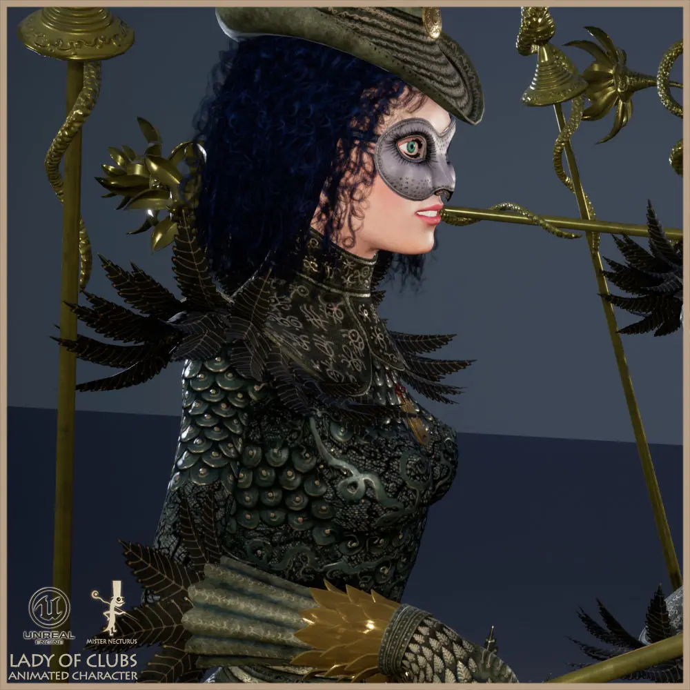 Scaled to Epic skeleton: YesRigged: YesRigged to Epic skeleton: YesAnimated: YesLods: Yes (exept skirt long)Number of characters: 2 basic character blueprints, 14 skeletal meshes including body, hair, clothes...Vertex counts of characters: 49,750 (22,909 LOD) including all weapons, armor and one hair set.Number of Textures: 18 diffuse, specular, opacity (in color alpha) and normals.Texture Resolutions: 2048X2048, 4096x4096