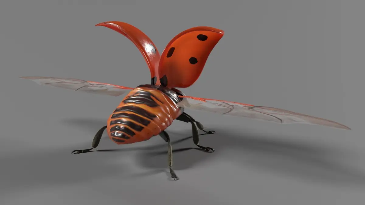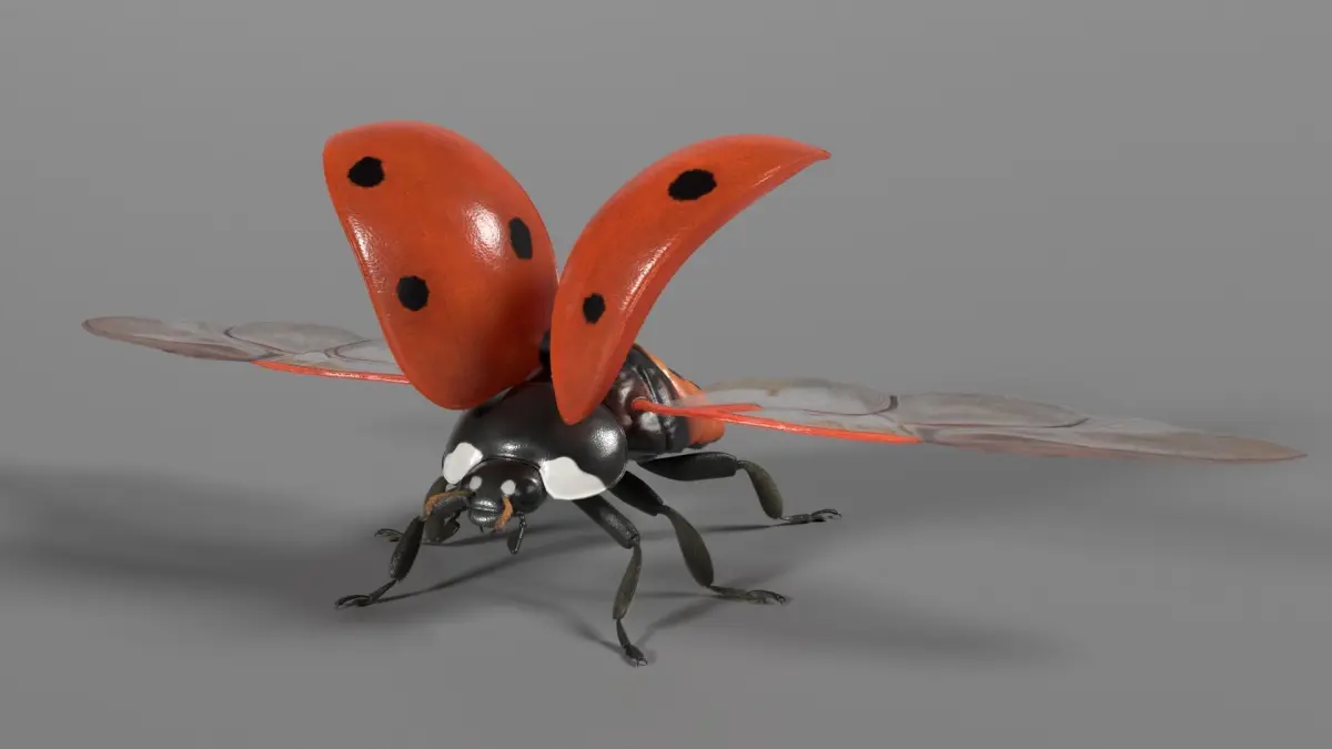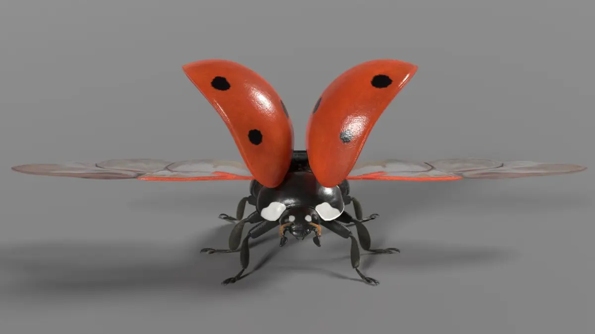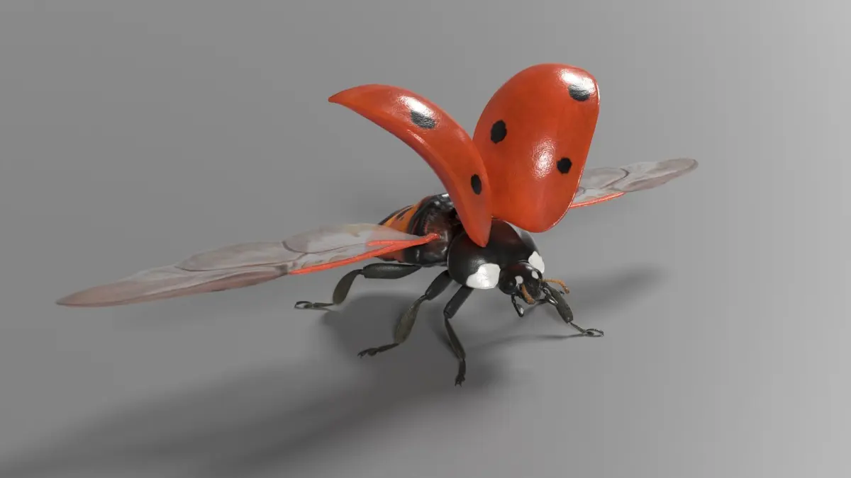 This is a 3D ladybug model with 4K high-resolution texture maps, fur, rigging, and animations of flying and crawling. The model is made with Blender 2.79b and rendered by Cycles renderer at real-world scale.