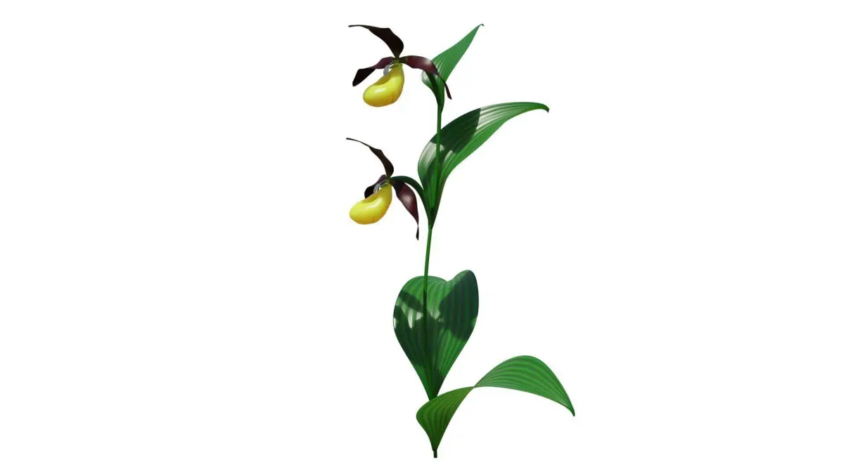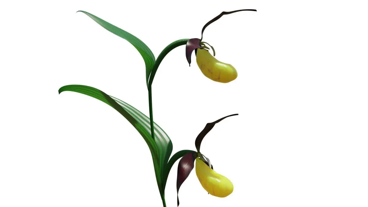 3D model of a Cypripedium calceolus, a plant also known as Lady's-slipper orchid.Created in Blender. Whole model is textured, with fully unwrapped UVs. 4096x4096 PNG texture maps are provided (color, roughness, normal, specular, transmission, SSS).Model consists of 48832 faces and 49028 vertices. Project also includes original .blend file with unapplied modifiers, non destructive workflow, and separate properly named objects.Model is carefully shaped with accurate proportions, and it's ideal for photorealistic visualizations.Please notice that model does not include any backgrounds, lights, or cameras used in preview images.Several exchange formats including .blend, .OBJ, .fbx, .DAE, .stl