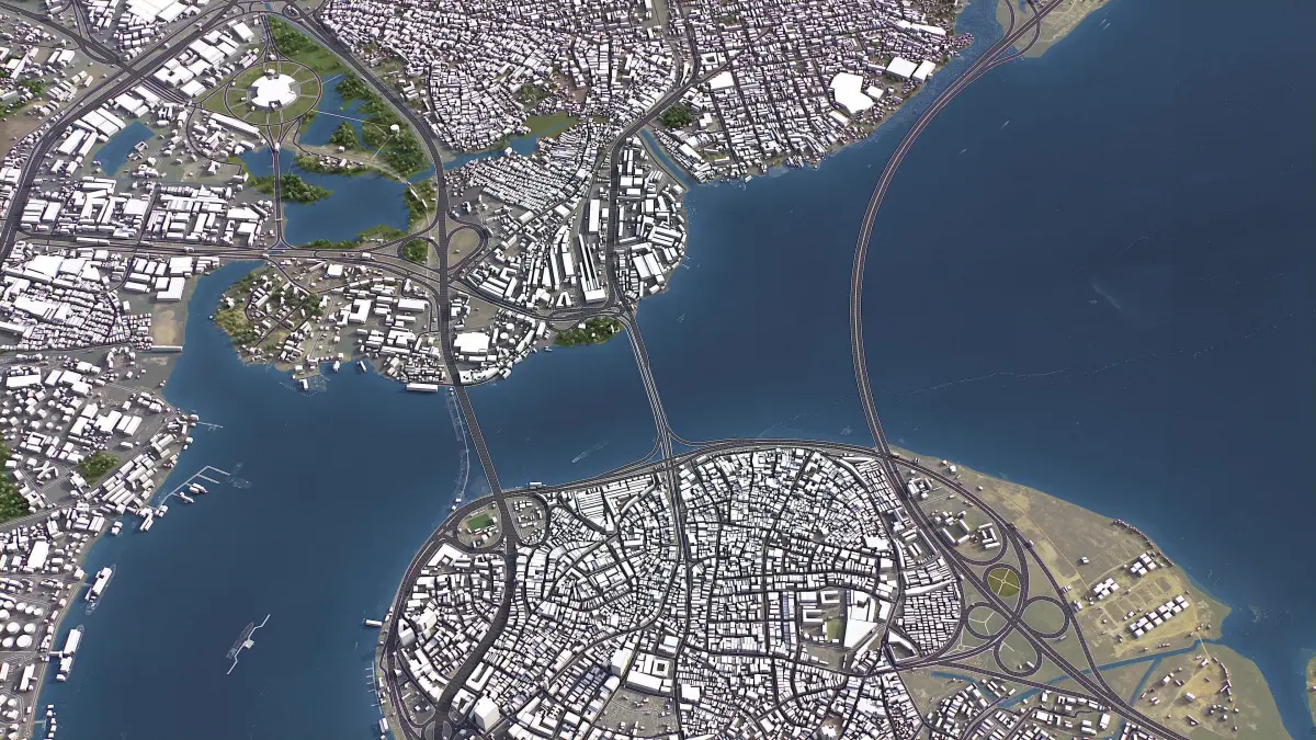- Full city extents up to 100 x 100 km — or crop to the area of interest for better format compability and scene performance