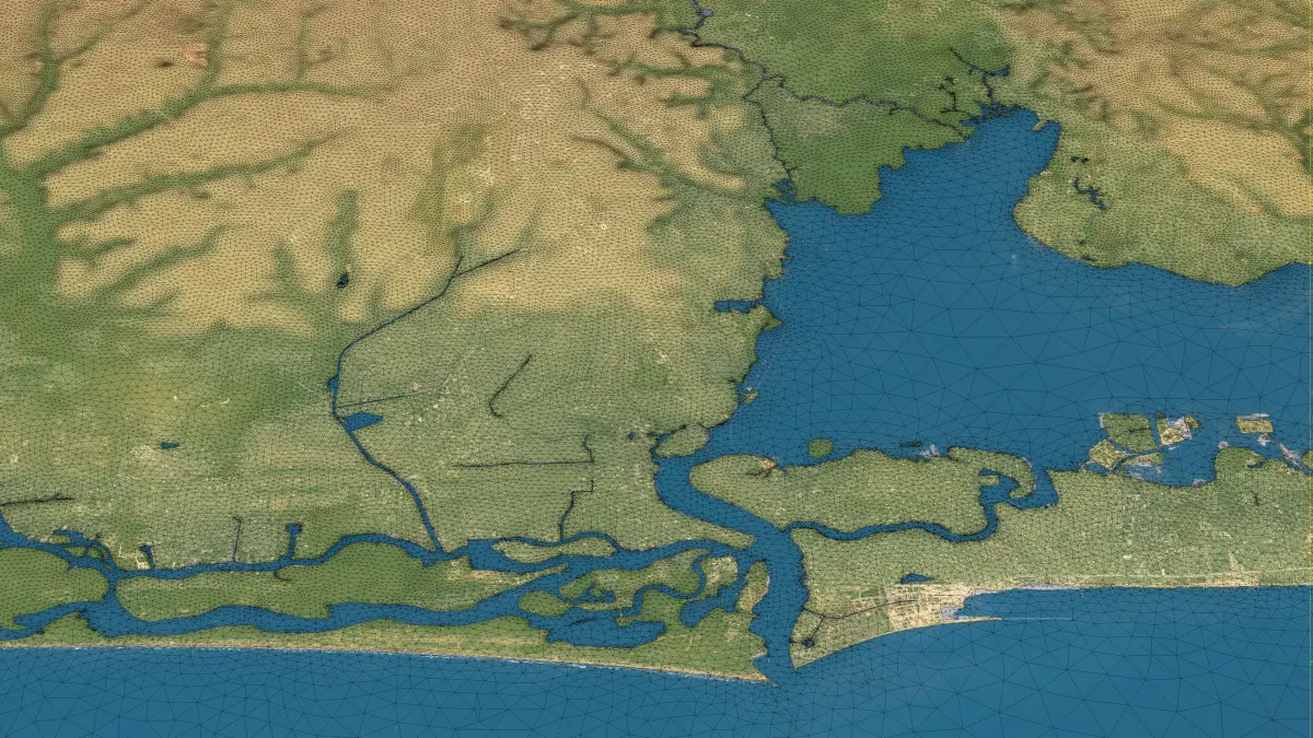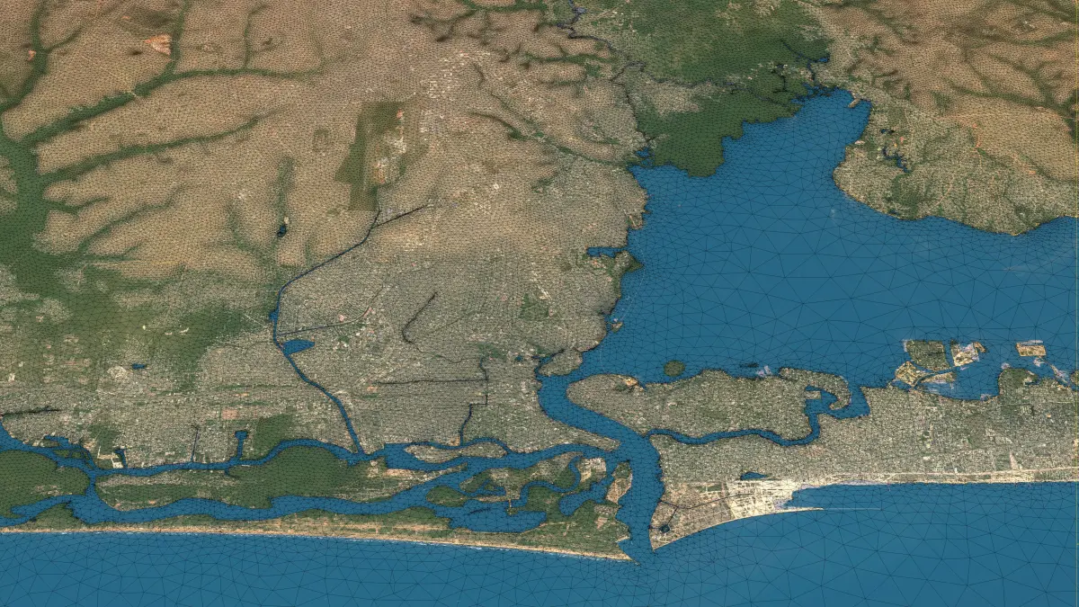 - Separate Land Surface and Water Bodies — Two distinct mesh objects with precise shorelines for realistic water features