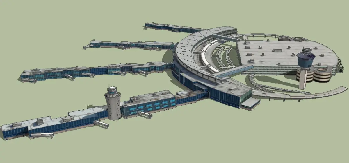 *PLEASE NOTE: This model contains terminals, parking garages, control towers, gates and jet-ways