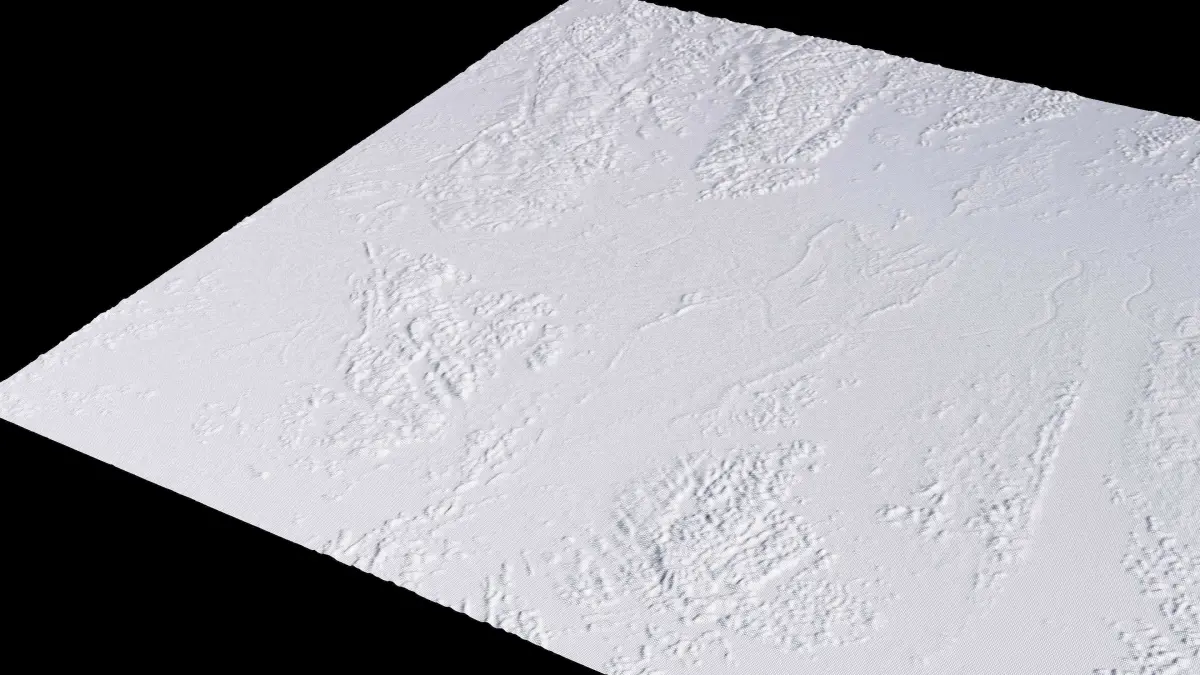 Originally created in Houdini 19. Final images rendered in Houdini. Data source is ASTER GDEM V3, ASTER WATER V1, Open Streep Maps 2022, Copernicus Sentinel 2016.