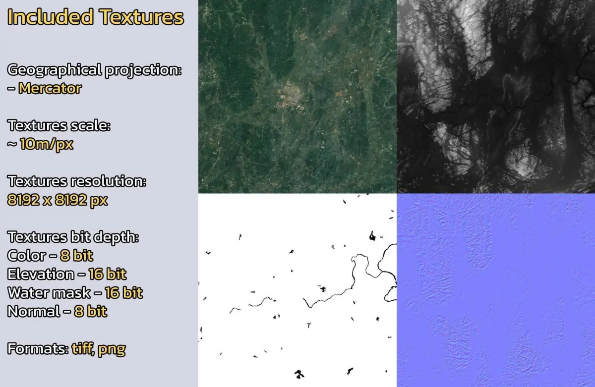 - Textures resolution: ~10m/px