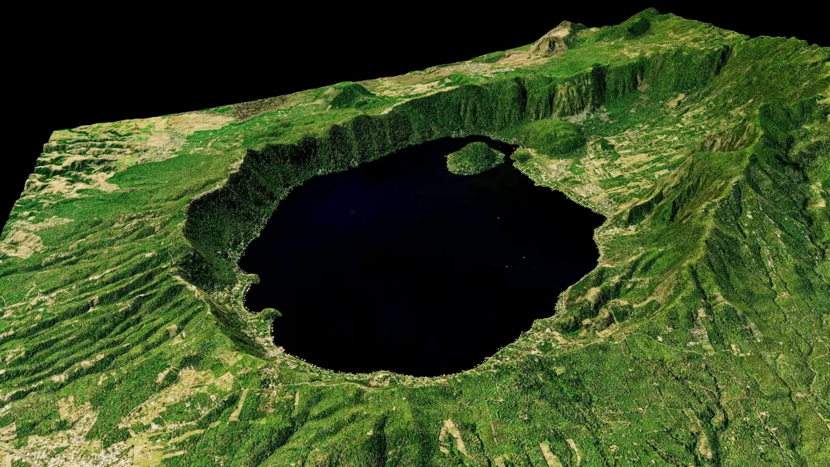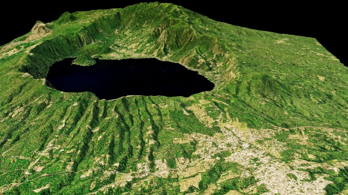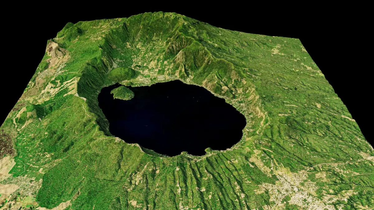 3d model landscape of Lago de Coatepeque Caldera, Coatepeque, Santa Ana, El Salvador.