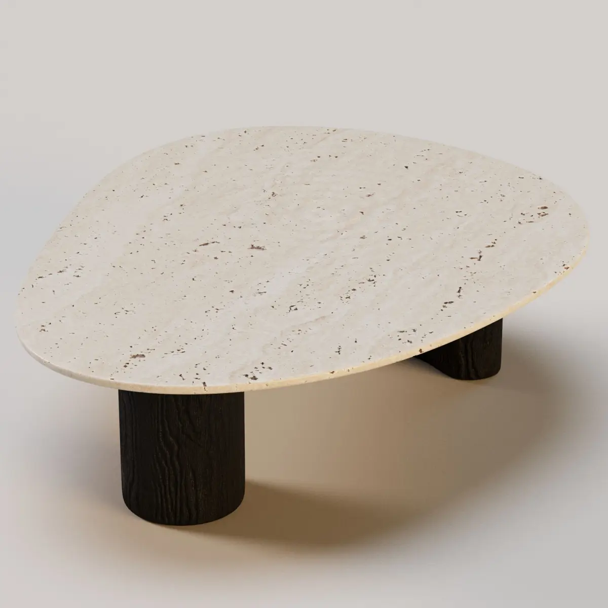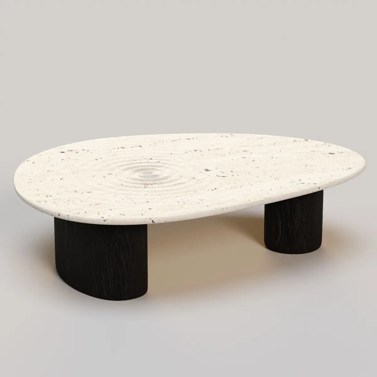This is a high-quality 3D model of a Lake-Inspired Coffee Table, featuring a black wood base and a beautifully crafted Travertine stone tabletop. The organic form and natural materials make it ideal for modern interiors that embrace biophilic, wabi-sabi, or nature-inspired aesthetics.