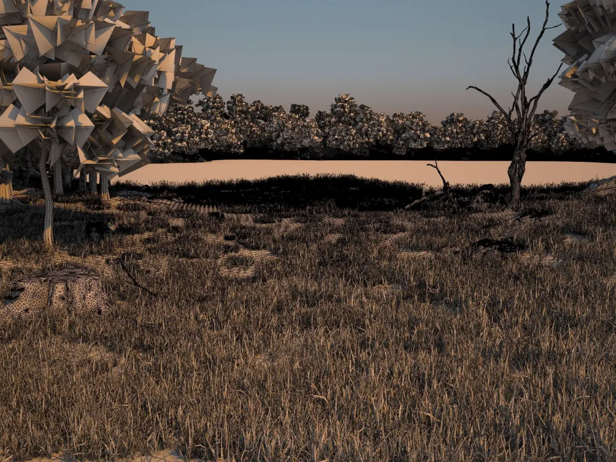 landscape of a summer glade with a lake, there are trees, grass, branches, a dry tree, stumps and stones on it. This work was done in 3D max 2020, but saved in the 2017 version. also has fbx and obj formats. I hope you will be satisfied