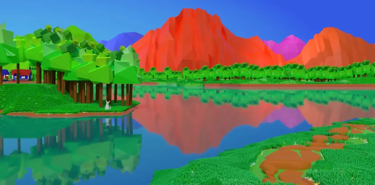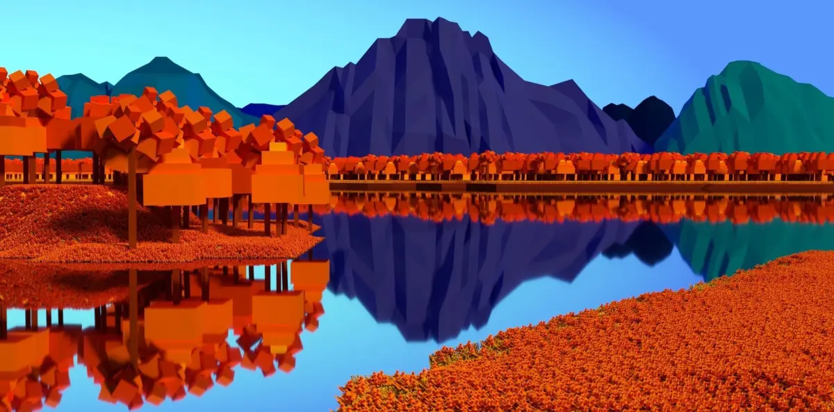 Lakeside lake with trees and mountains Free low-poly 3D model