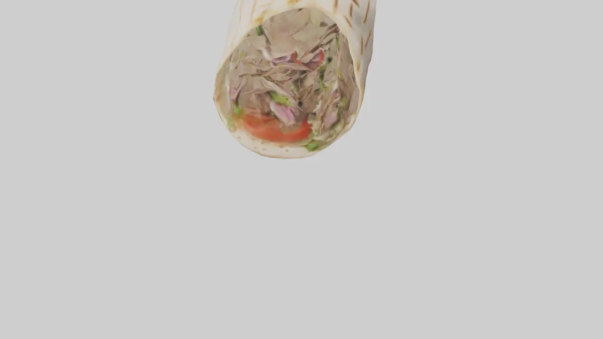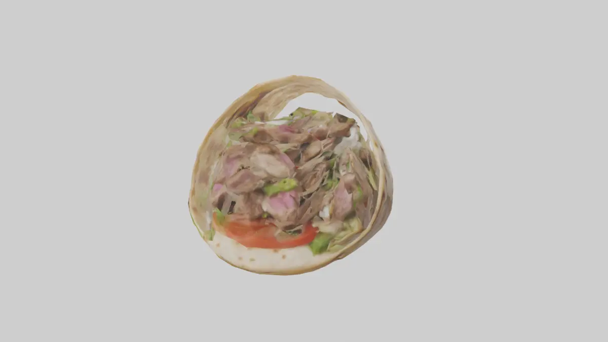 Parole chiave: gyro di agnello 3D, modello di gyro, modello di panino, modello di cibo, modello culinario, modello di stampa 3D, FBX, OBJ, GLB, USDZ, STL, BLEND, modello 3D.