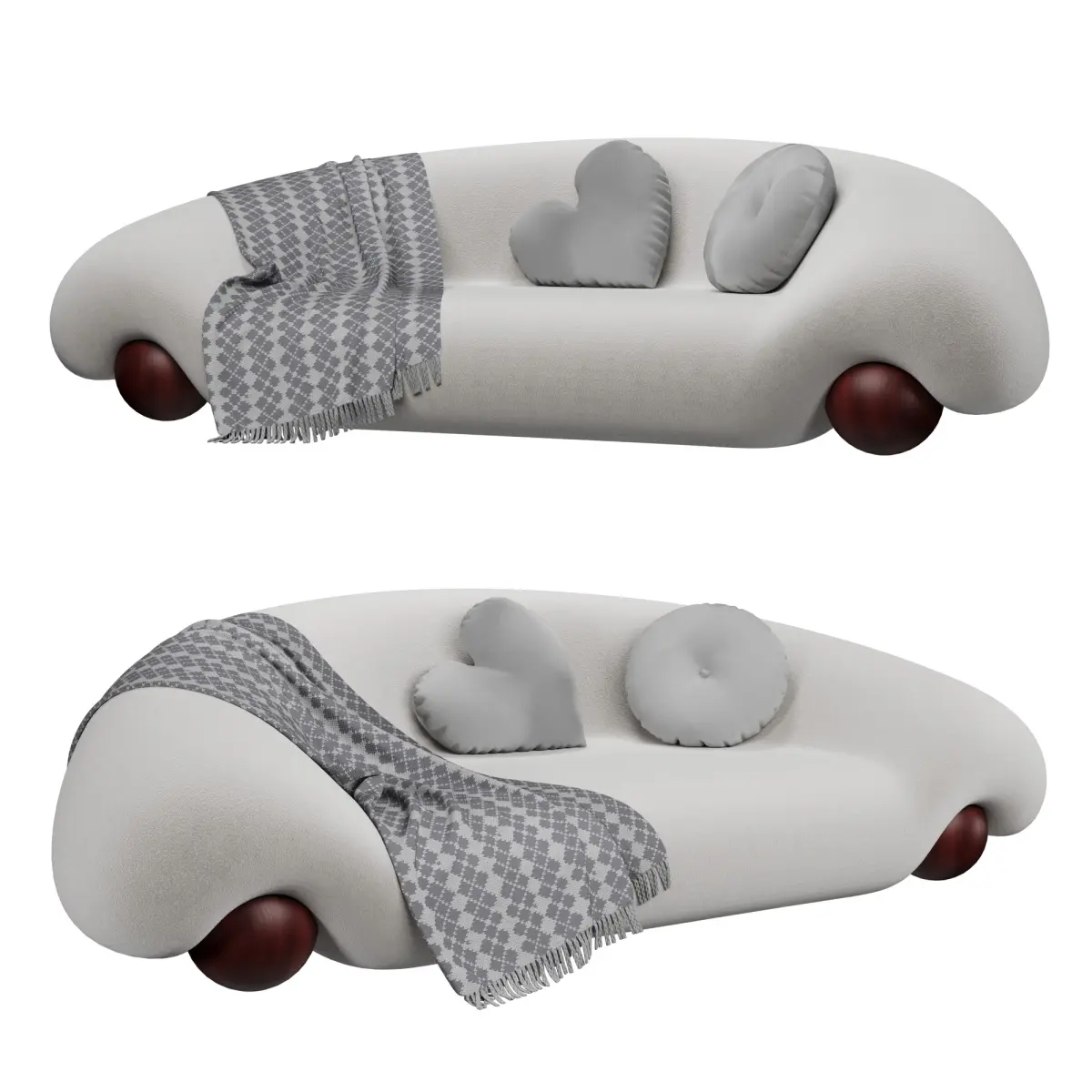 Unique Lamb Sofa with a soft, curved design and plush upholstery. Features decorative pillows and a cozy throw for a stylish, modern interior. Perfect for high-end living spaces and contemporary decor. High-quality 3D model optimized for 3ds Max with realistic textures and details.
