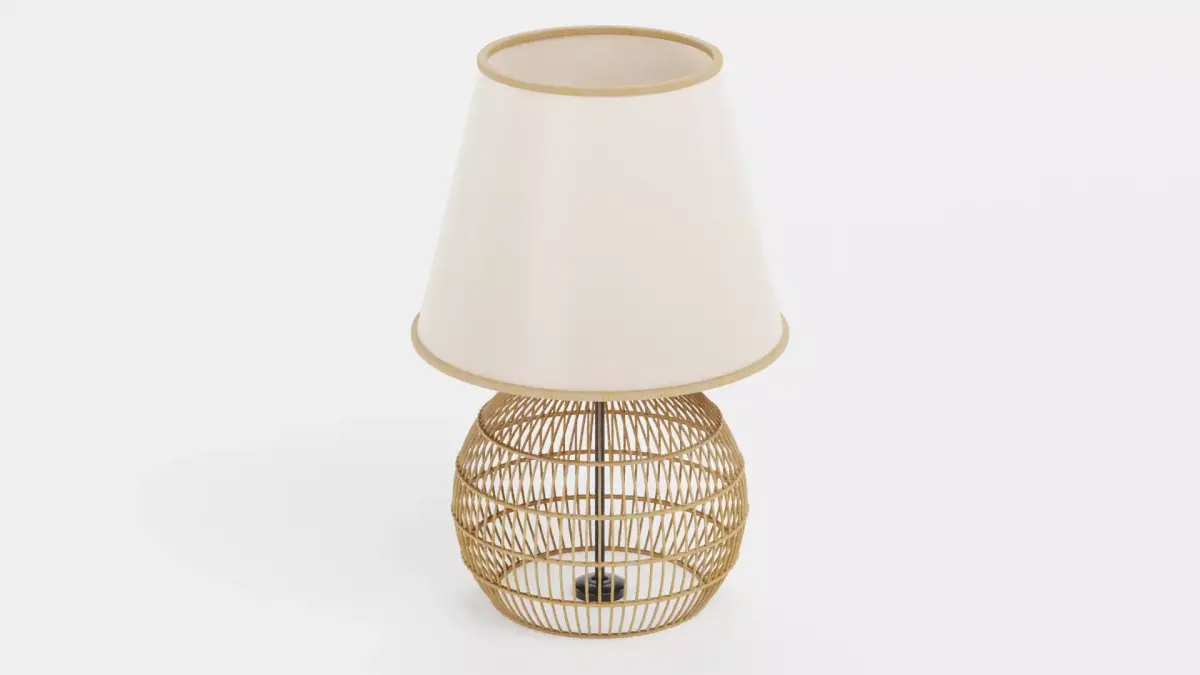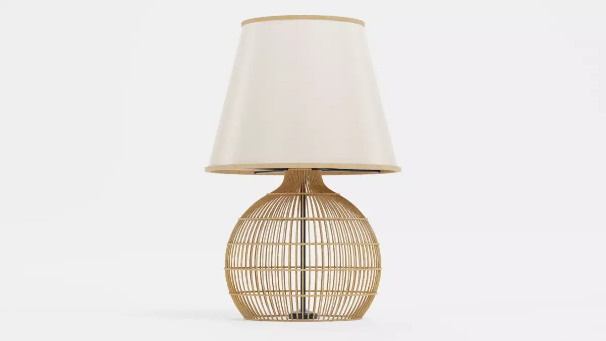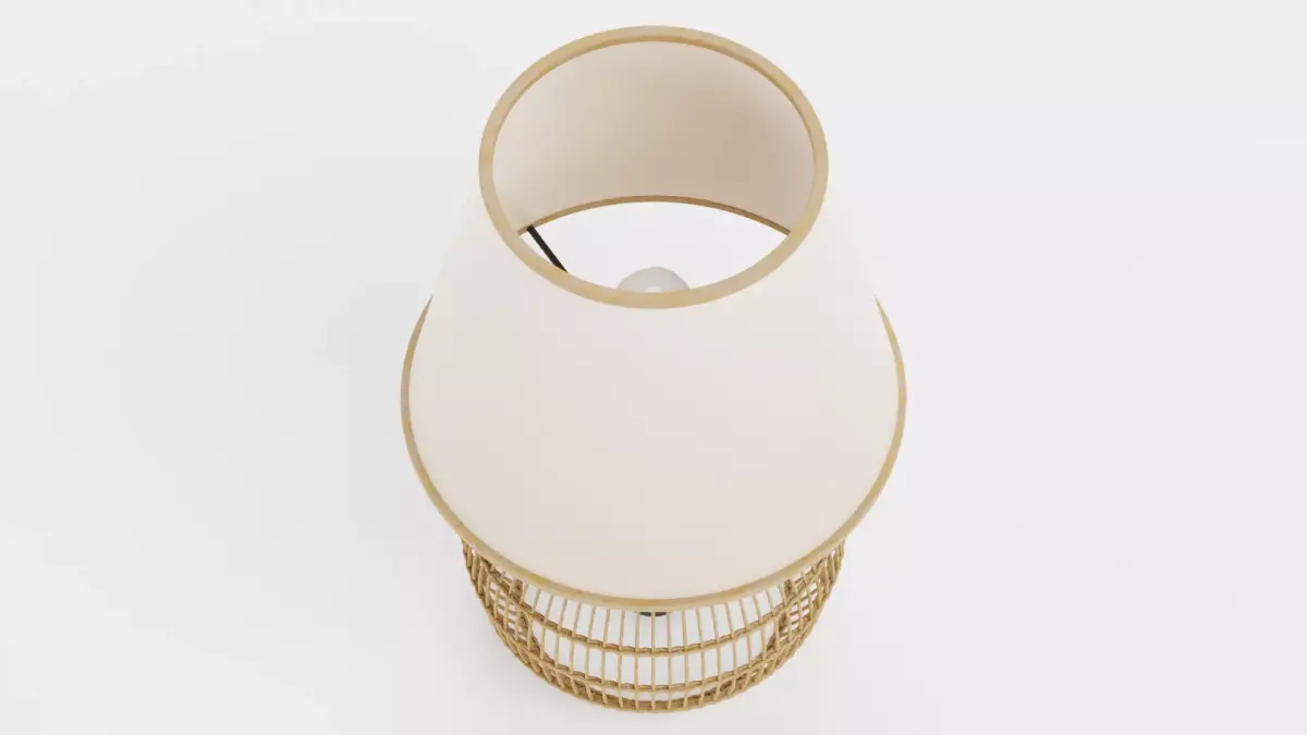 A ready-to-use table lamp designed to bring a soft, natural accent into interior scenes. The model combines a woven base with a light fabric shade, creating a balanced mix of texture and clean form. A visible lightbulb adds functional detail and supports more realistic lighting setups in close or mid-range shots. The complete structure makes it easy to place as a single asset without additional assembly. Suitable for interior visualization, bedside setups, or general scene dressing.