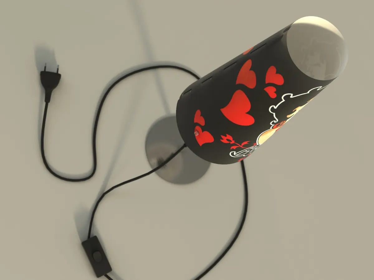3D Lamp model with Betty Boop on the lampshadeTwo mesh :The lamp with a multisub-object materials containing 6 materials.The power cable with a multisub-object materials containing 5 materials.I have separated them to simplify. Don't need to hide the cable, you can delete it if you want only the lamp. Thus the cable is rigged and independent two the lamp.