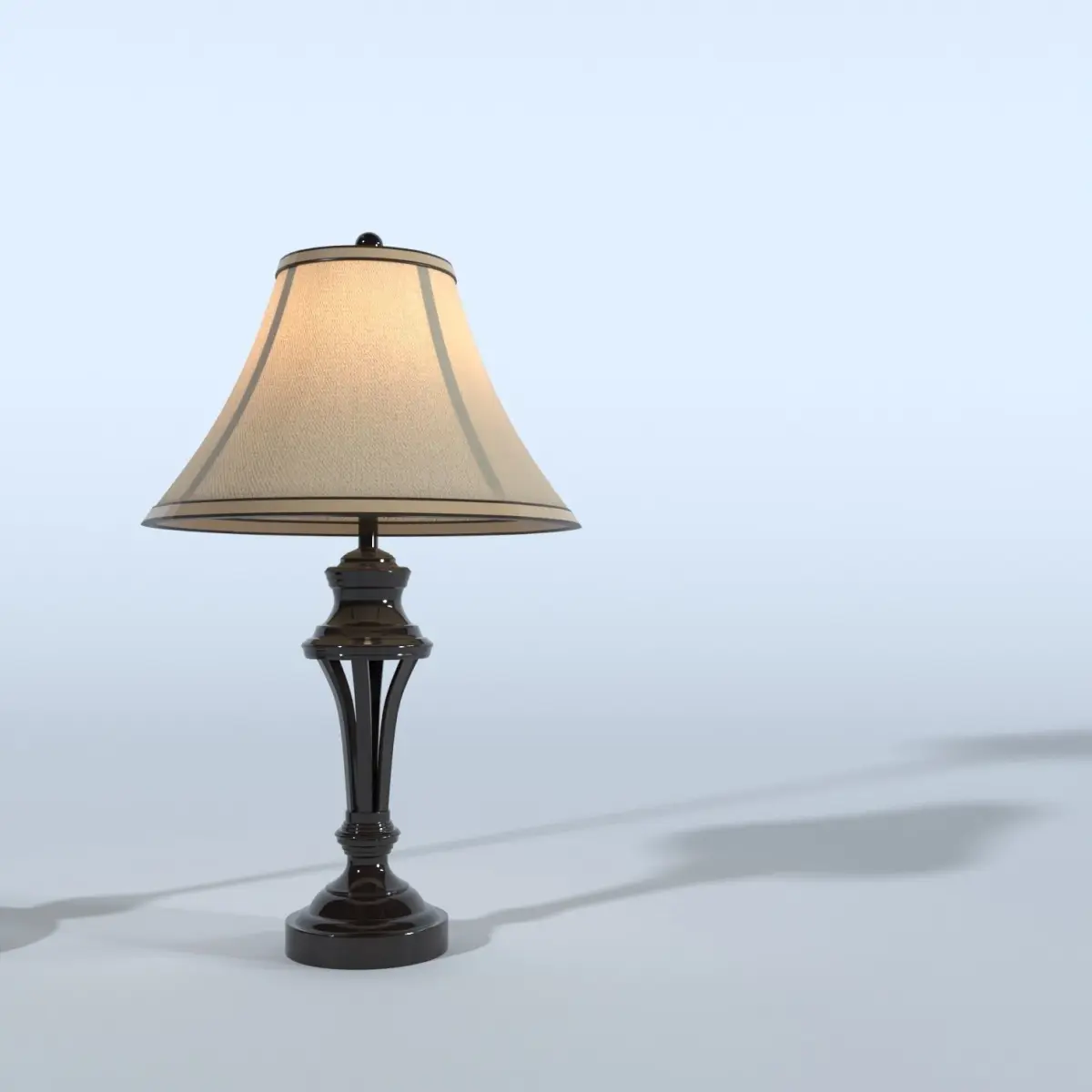 Two separate attached models from the same lamp type. Material ID's are the same on the models. One Multi/Sub material can be used on both. (1) wood (2) top plastic1 (3) top plastic2 (4) fabric (5) chrome (6) glass (7) lamp glassMaterials are Corona materials with color corrections.CoronaLight is attached to the models.