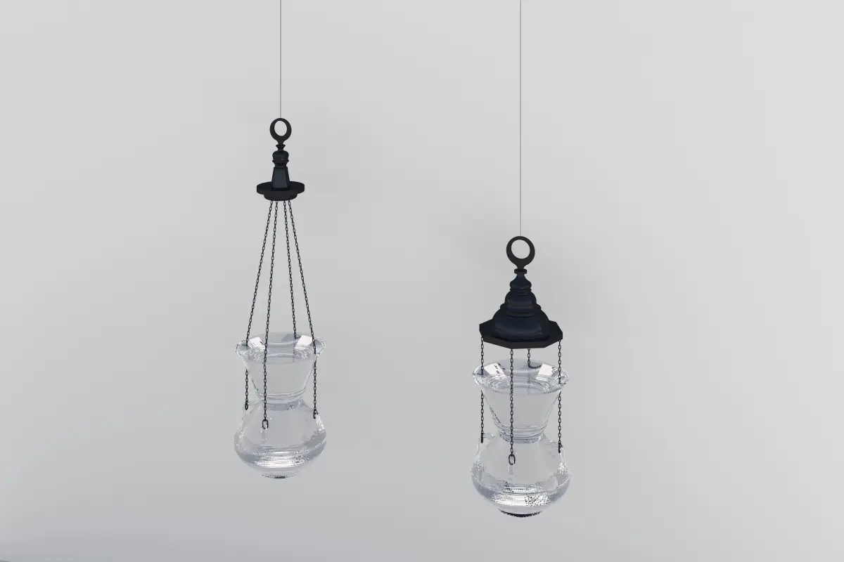 Glass lantern that can be used in different spaces indoors and outdoors.One can apply different materials to the object other than glass and metal.The measurements can be modified, the existing ones are H: 3000 mm x W: 500mm.