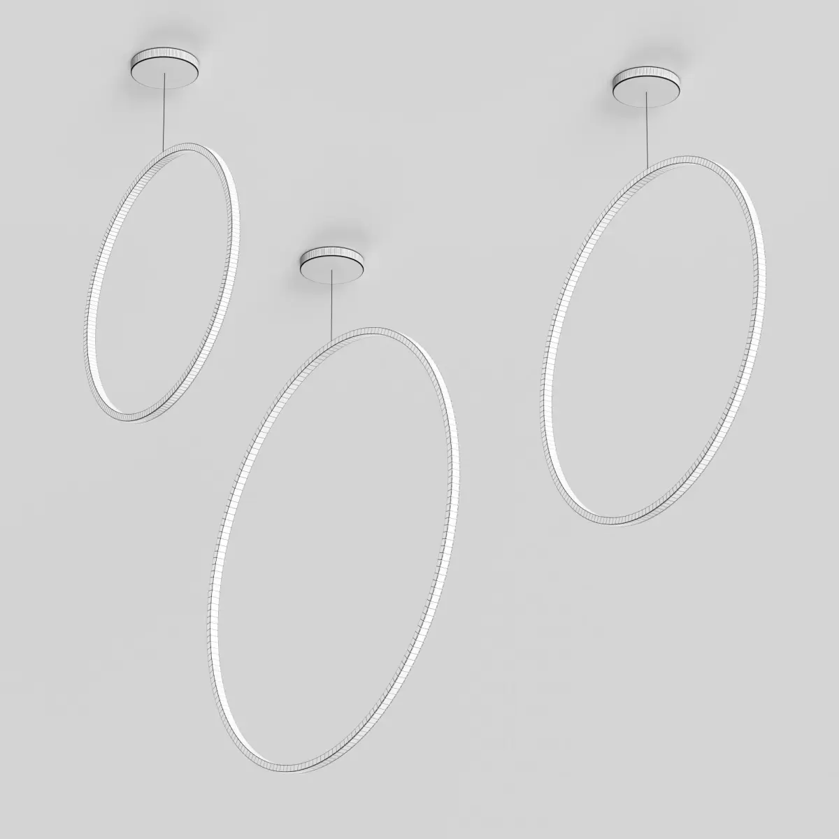 The pendant LED light in the form of a ring with a diameter ranging from 42.5 cm to 105 cm, with illumination both inward and separately models with outward illumination. A modern, stylish chandelier - a designer LED light fixture in the form of a ring. This designer chandelier is ideal for interiors in the modern, loft, and high-tech styles.