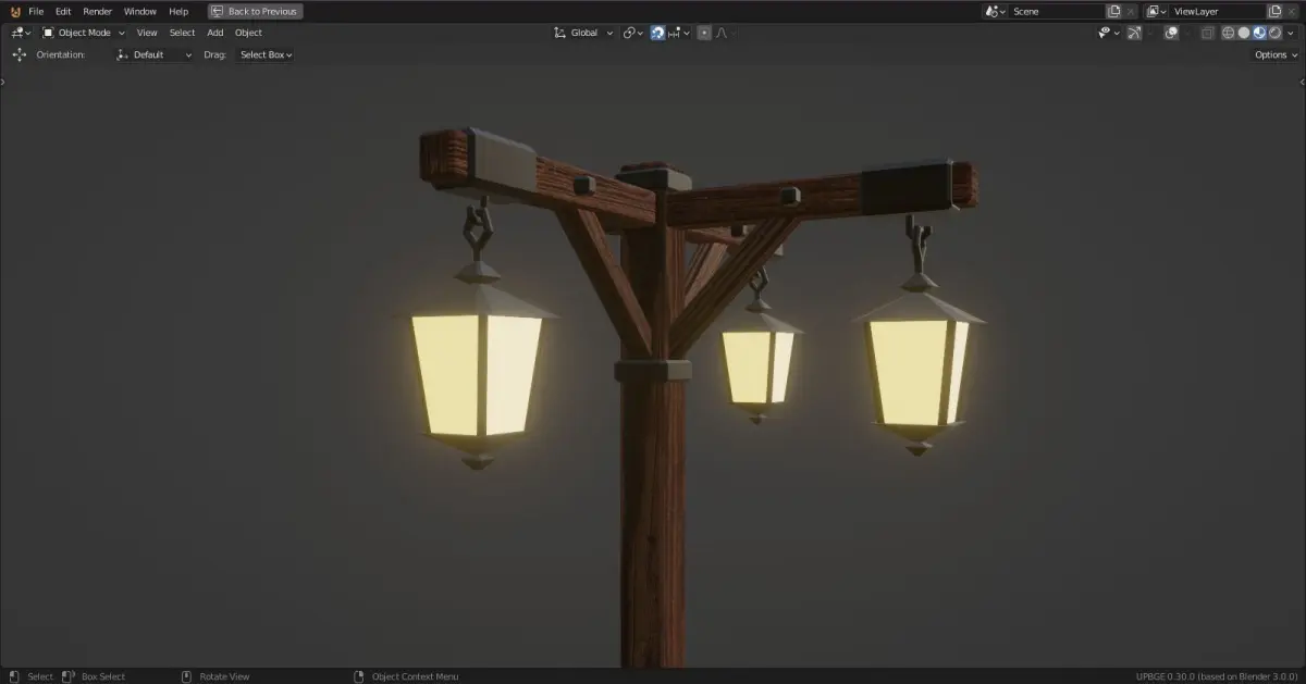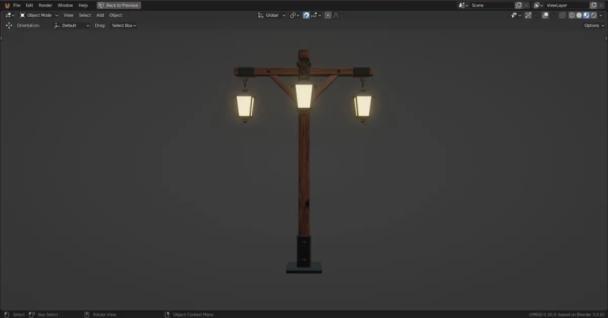 - Model - 07 - Low Poly - Three Sided Lamp Post - With Iron Plates