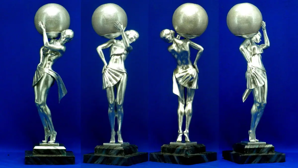 - Art Deco Lamp 8 parts were printed on a Lad-1.0 FDM printer with a 0.4 mm nozzle, layer height 0.1 mm for figurine parts and 0.2 mm for other parts.