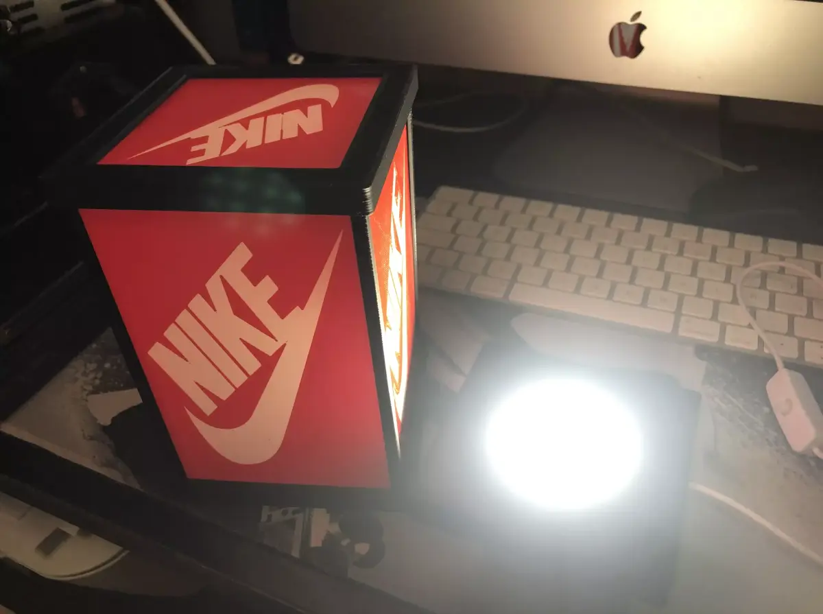 NIKE LAMP WITH SIDES PRINT IN MULTICOLOUR WITH ONE EXTRUDER. DESIGNED COLOUR AS DIFERENT OBJECT. EASY TO PRINT AND ASSEMBLY YOU CAN TI BUY LED SET IN ALIEXPRESS:https://es.aliexpress.com/item/1005008824366718.html