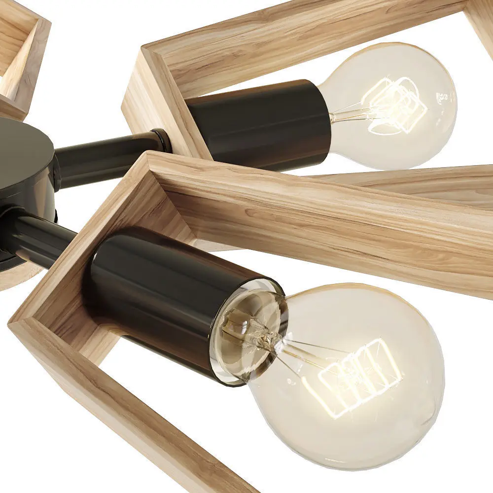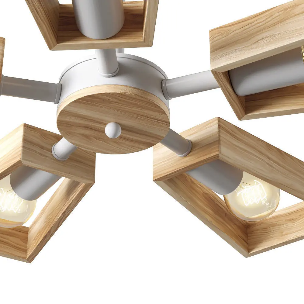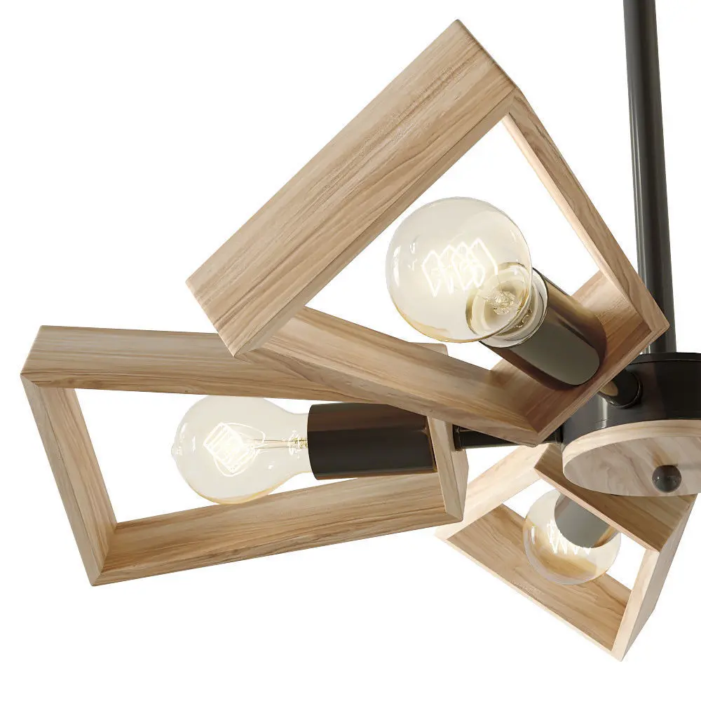 Contemporary designer chandelier with 6 wooden lamps.3 configurations of lamps - rotation 0°, 45°, 90°.