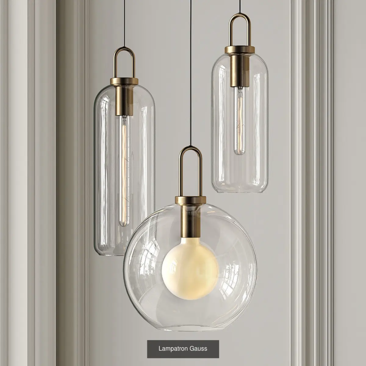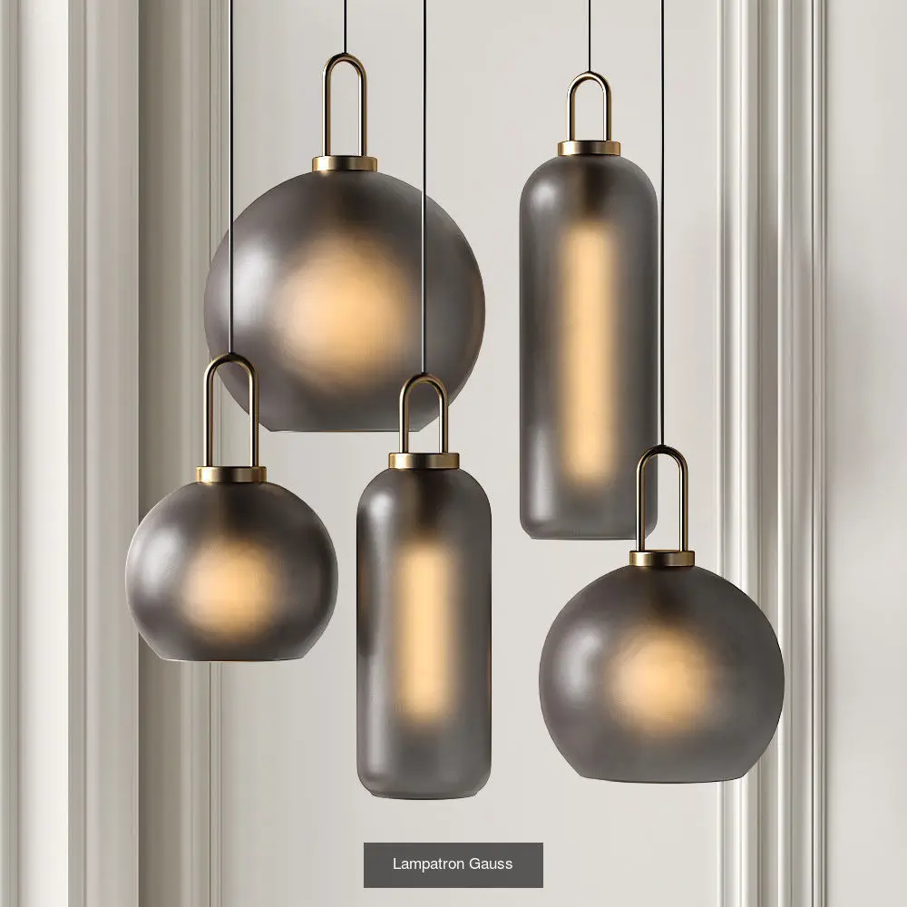 Lampatron Gauss collection includes 3 pendant lights in white/gold and 5 lights in black/gold colors.