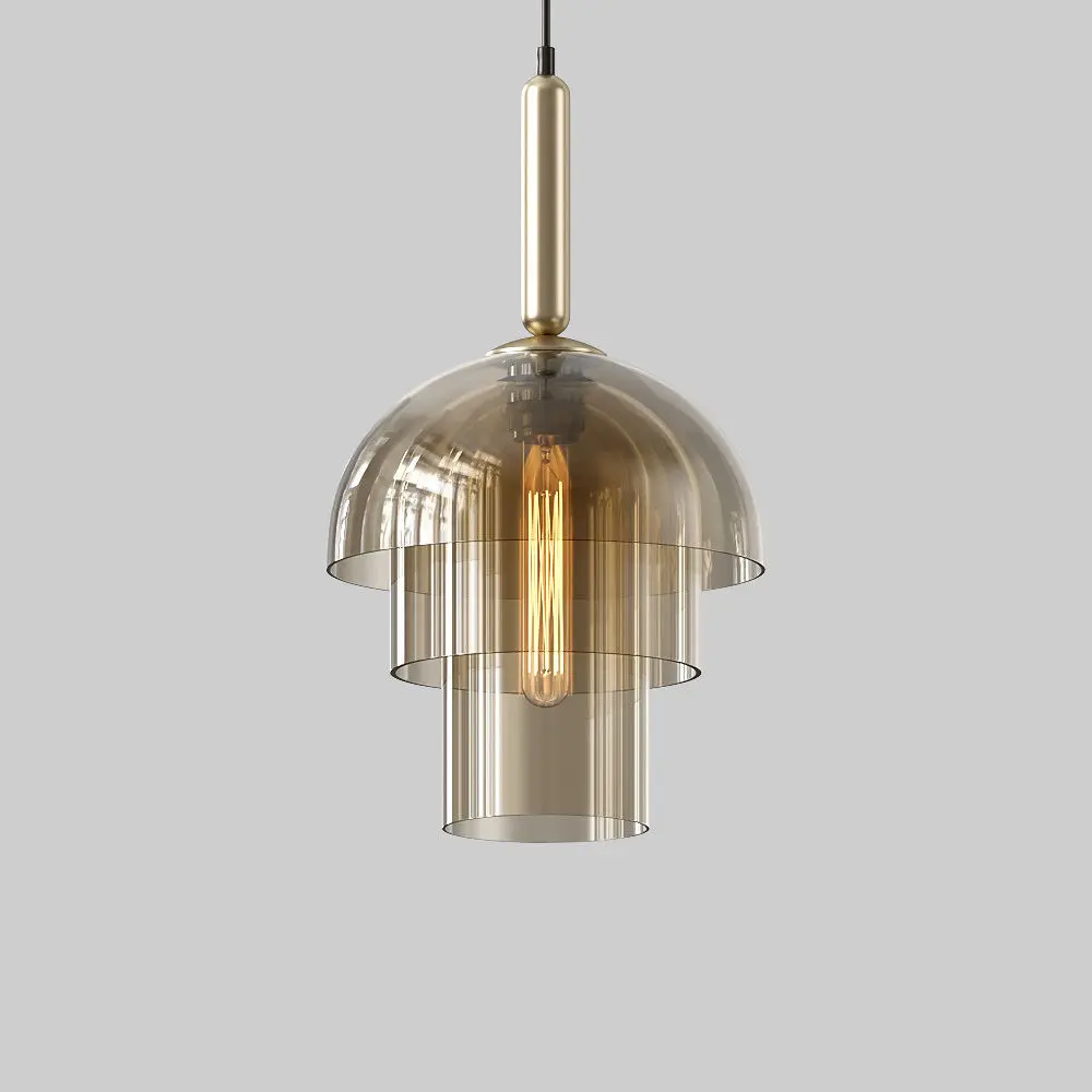 Contemporary designer pendant light with glass shades from Jolly collection.Recommend an Edison bulb to add some retro vibes.Metal parts finish - gold, glass shade color - amber.