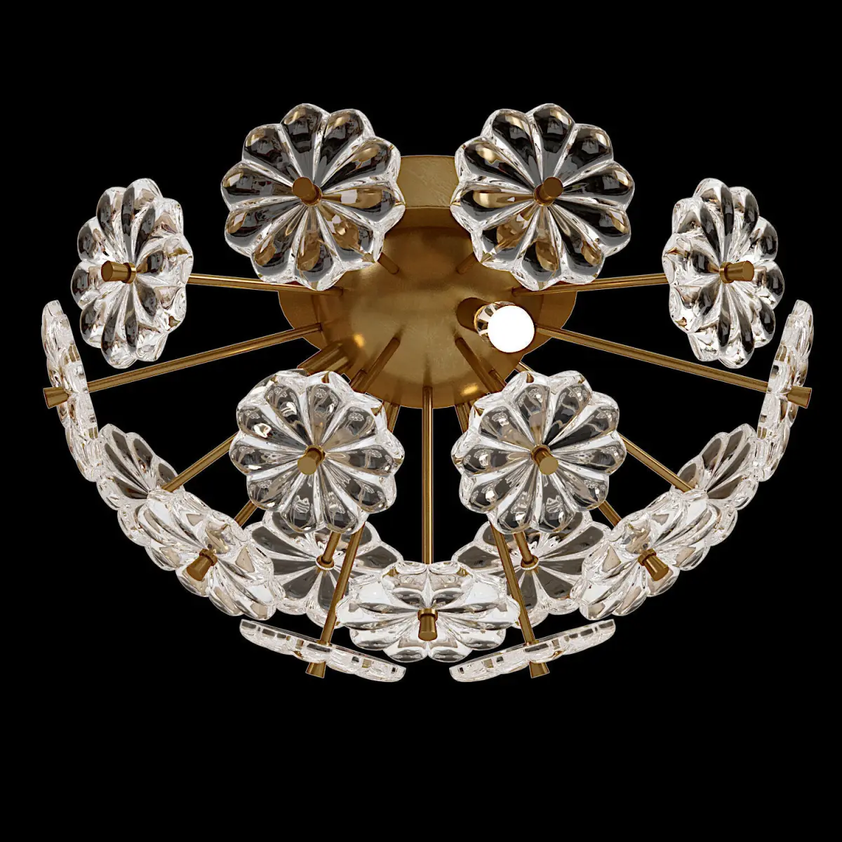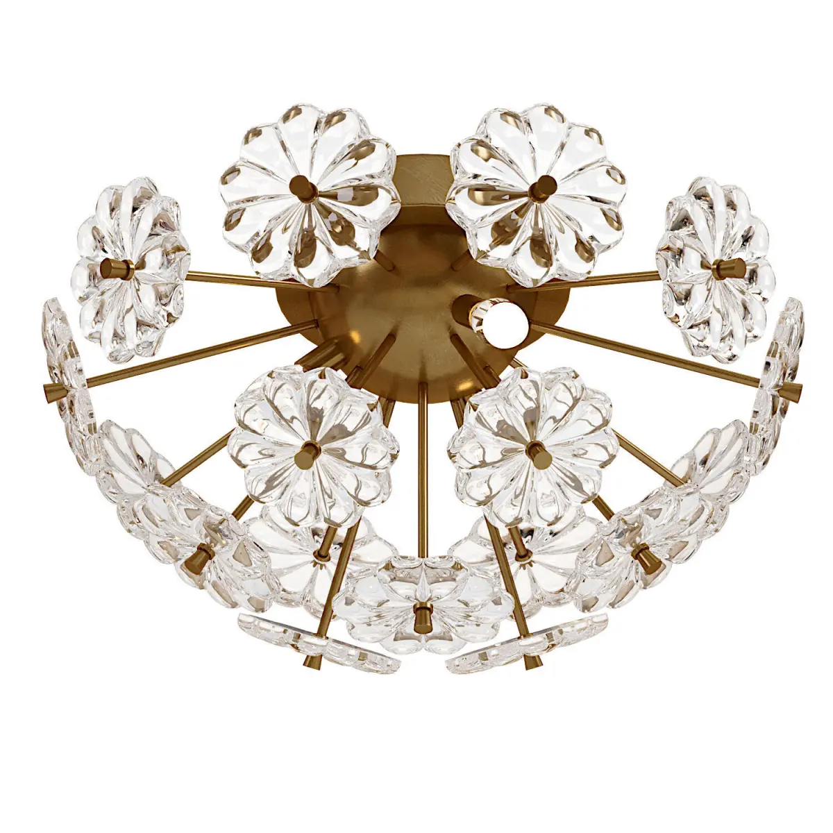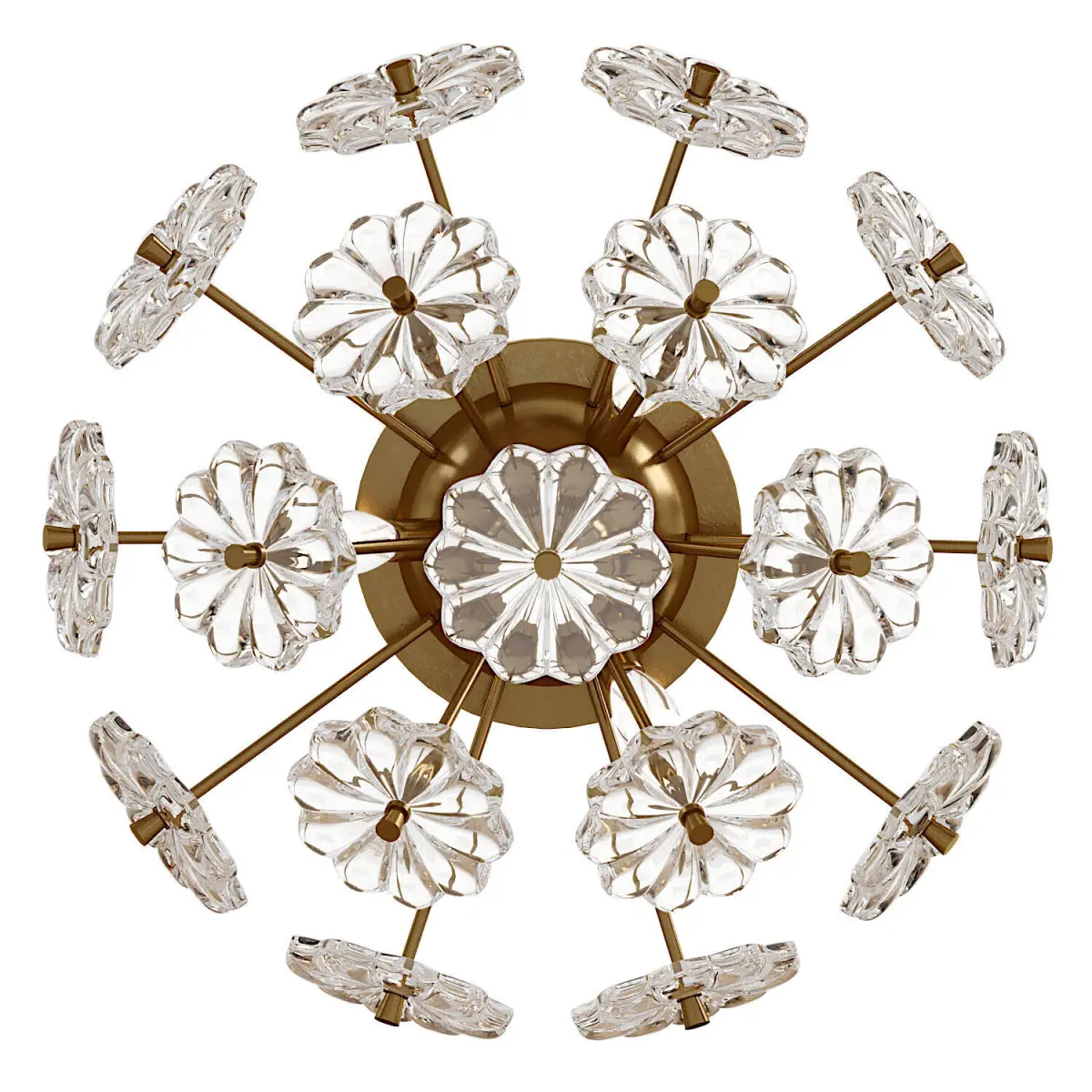 Lampatron MOIRA Ceiling Chandelier :F-MOIRA-C01. Chandelier. Material: metal / glass; frame color: gold; dimensions (diameter × height): Ø 32 × 16 cm; base type: G9; number of sources: 3Ceiling chandelier with glass decoration in the form of flowers on radially arranged racks