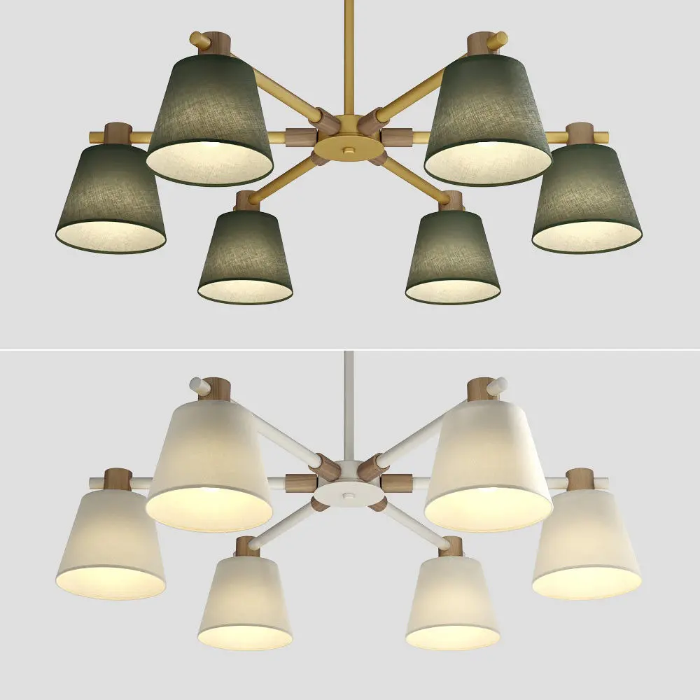 Contemporary designer chandelier light with 6 textile shades from Natura collection.Models available in white/white, yellow/black and green/yellow colors.