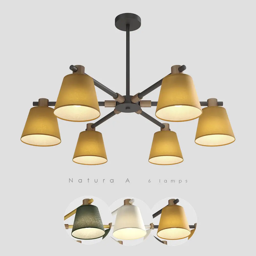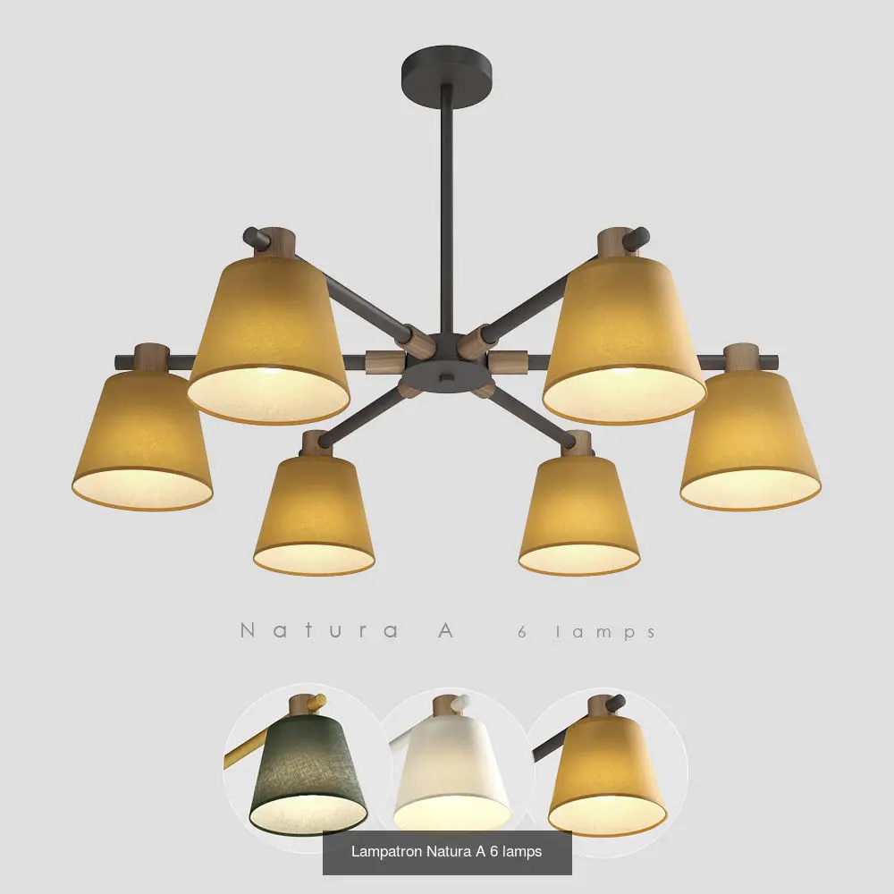 Lampatron Natura A collection includes 3 chandeliers and 1 wall light.Models available in white/white, yellow/black and green/yellow colors.Separate models with turn off lights are included.